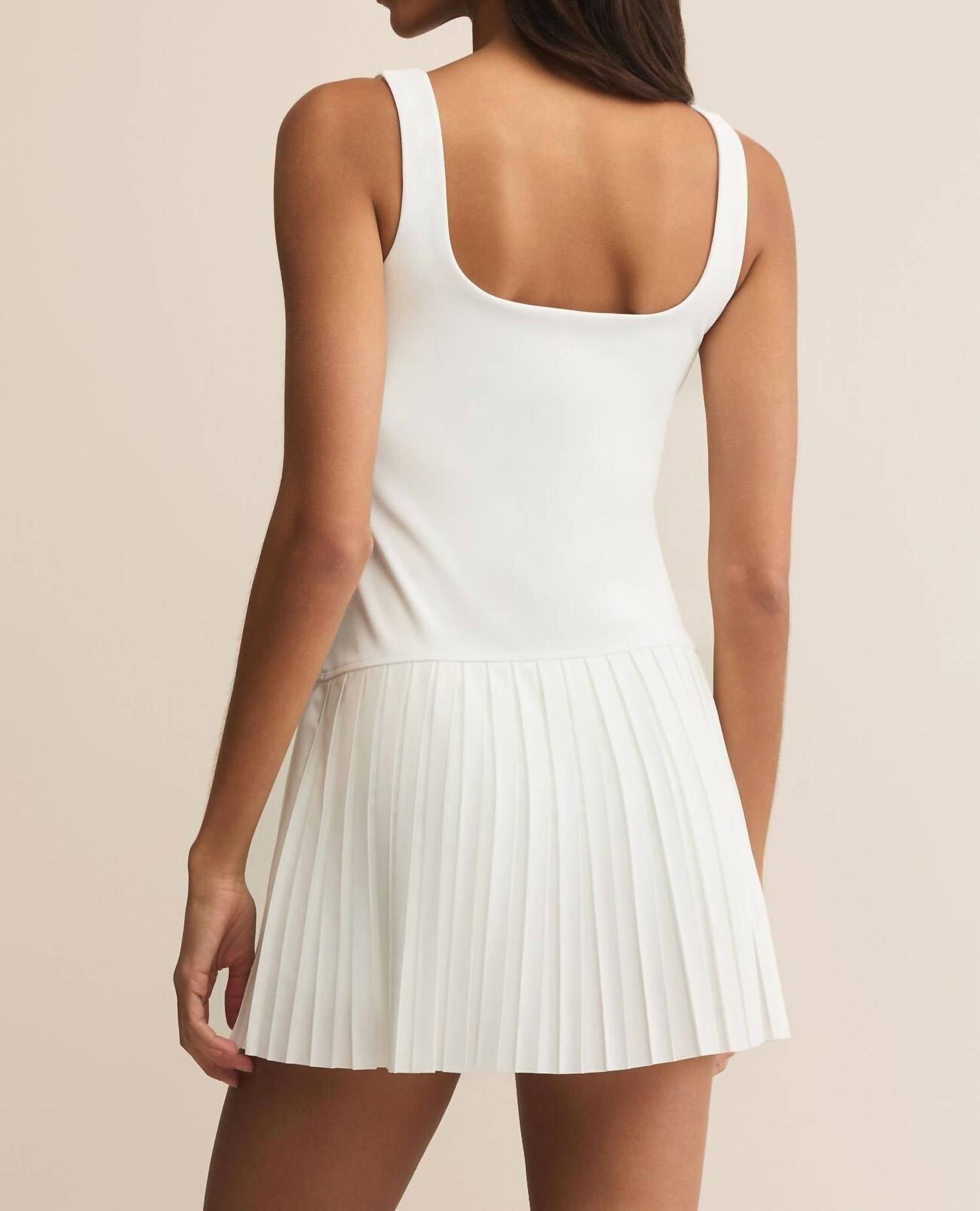 The kind of easy and flattering dress you'll be reaching for all season long. Introducing the In Your Court Active Dress by Z Supply, a fashionable and functional mini perfect for on and off the court. This sleeveless A-line dress in solid white features a flattering scoop neckline and a pull-on closure for effortless wear. Crafted from moisture-wicking nylon, it ensures you stay cool during energetic activities, and the pleated skirt adds a fun bounce. With a sneaky ball pocket for convenience, this dress is ready for anything from tennis matches to brunch dates.