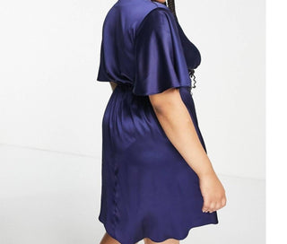 Flounce London - Satin Flutter Sleeve Mini Dress - Plus