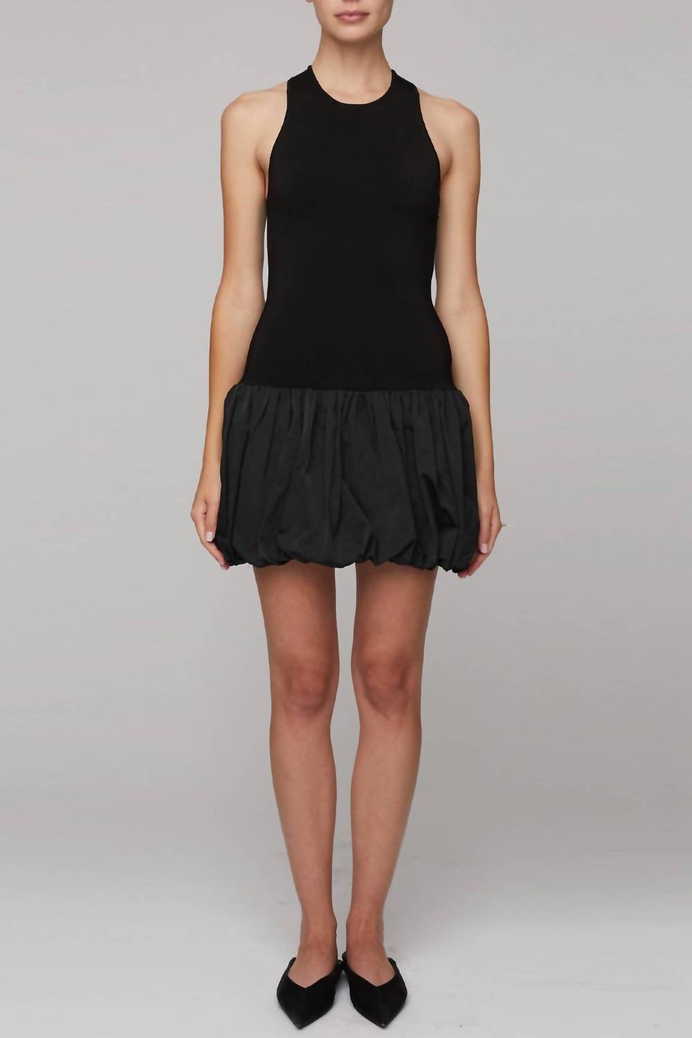 Introducing the Eloise Mini Dress by A.L.C., a stunning addition to your summer wardrobe. This sleeveless piece, crafted from mid-weight, super-stretch ribbed knit, showcases a fit-and-flare silhouette perfect for any concert or New Year's Eve celebration. The dress features a woven bubble skirt and a crewneck pullover design for effortless elegance. Composition: 86% Rayon, 13% Nylon, 1% Elastane, with 100% Polyester trim. Imported from China. Care: Dry clean only.
