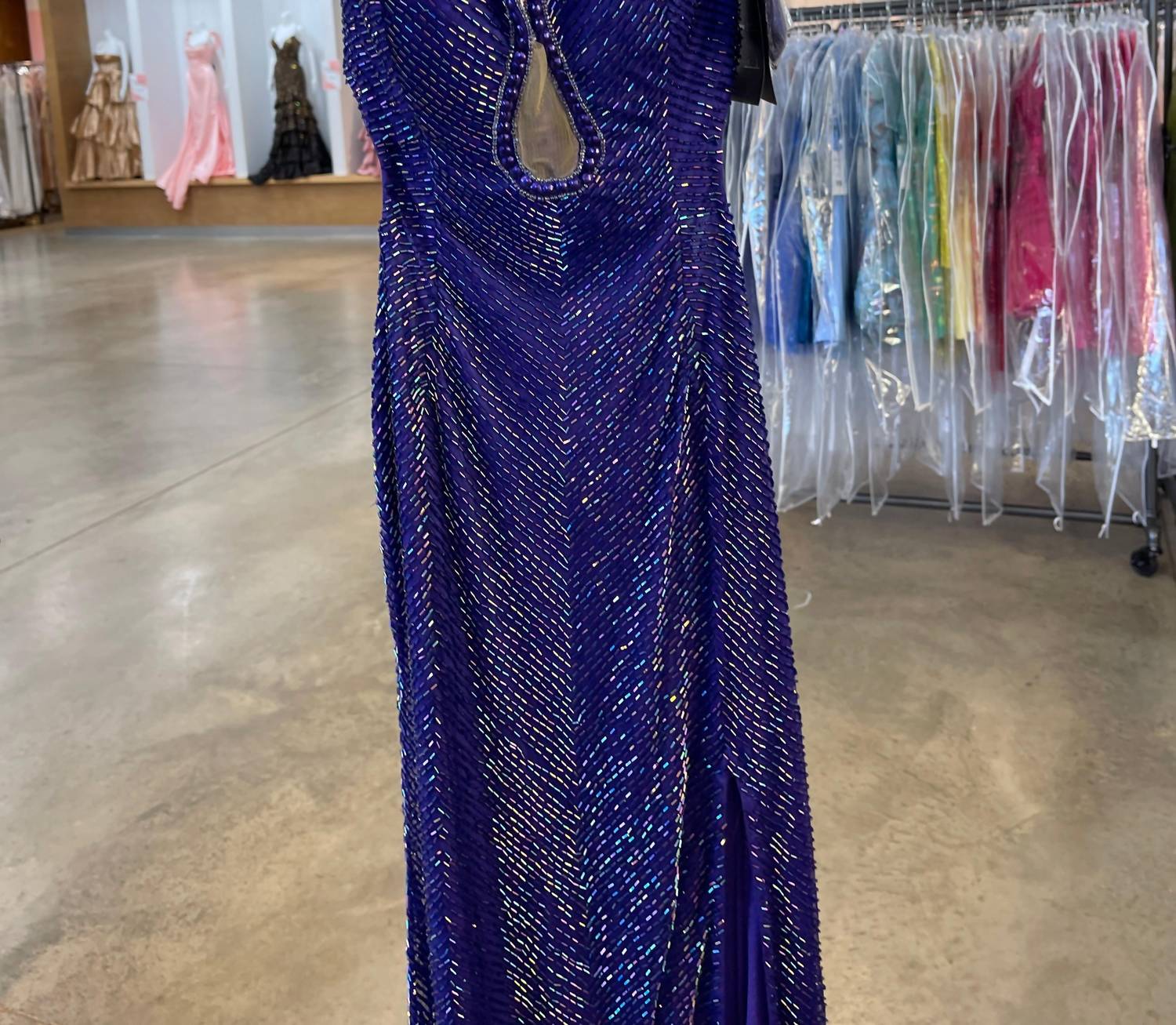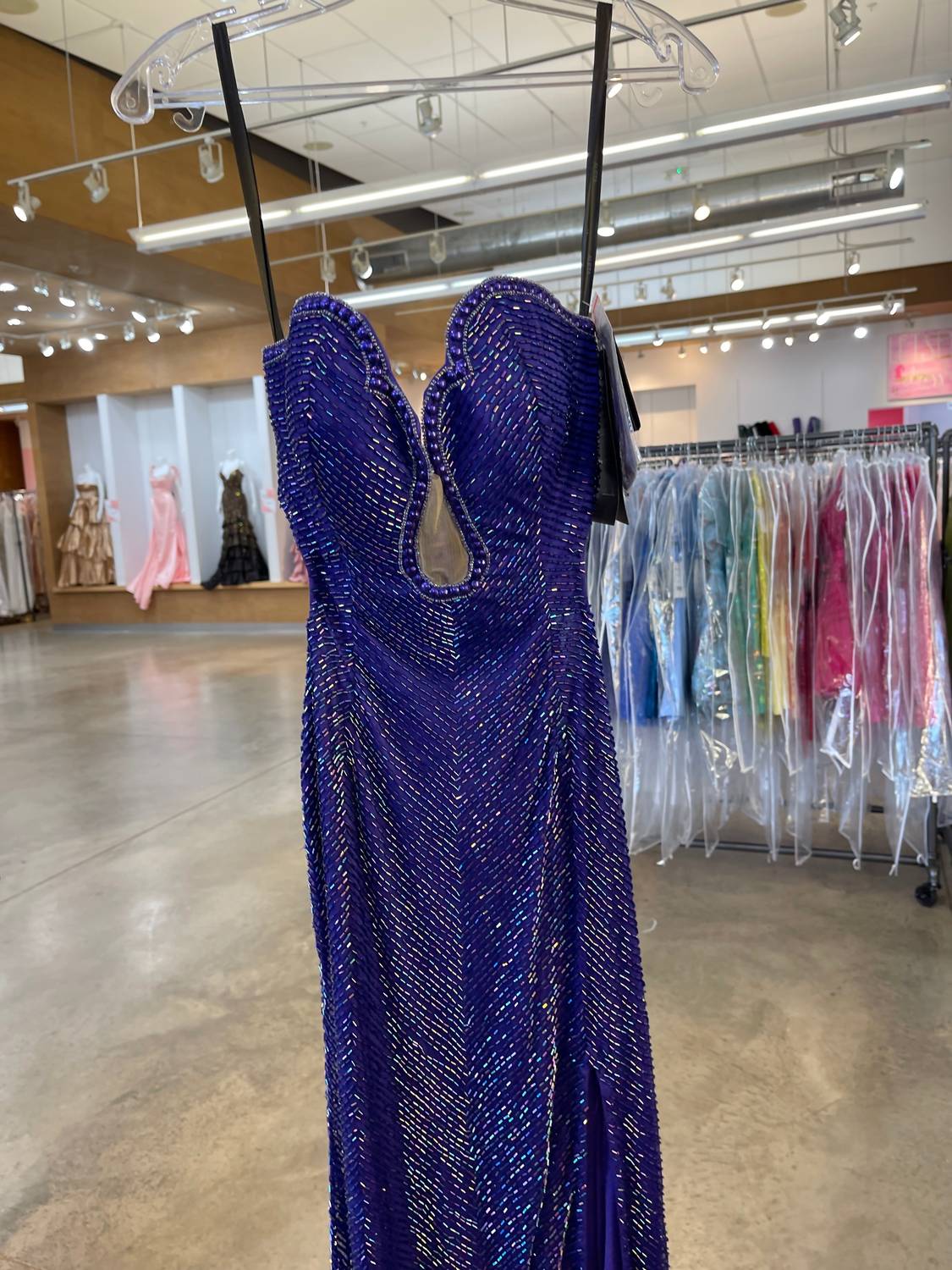 Looking for that perfect event dress? Look no further... Discover the Sweetheart With Slit Prom Dress by Aleta, a striking choice for any spring soirée. This dark purple, strapless sheath dress boasts a flattering sweetheart neckline and a sophisticated slit for added allure. Perfectly in tune with the maximalist trend, this patterned gown ensures you stand out on your special night.