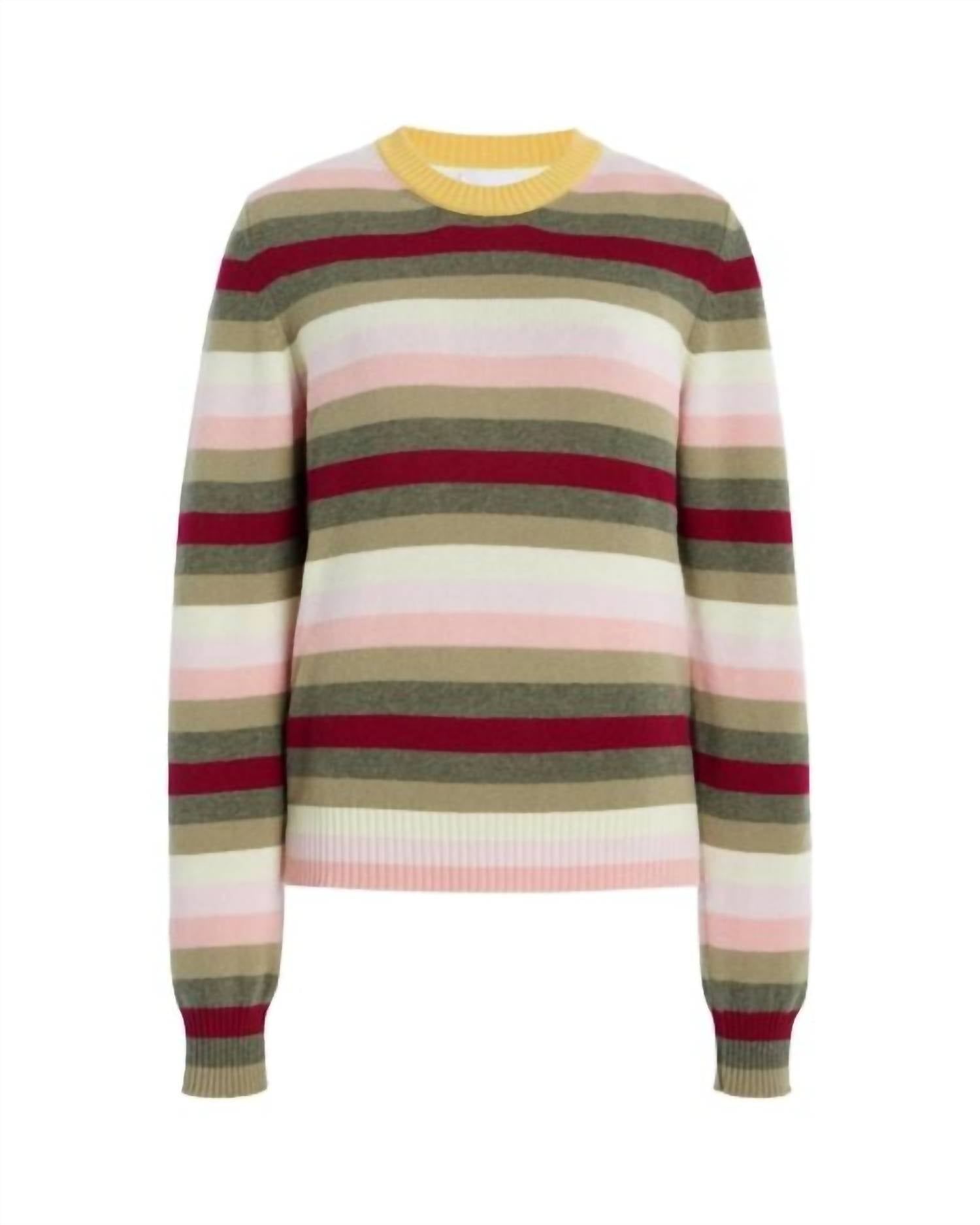 The ultimate go-to sweater, expertly crafted to provide the perfect combination of warmth and style. Its classic design and soft fabric make it a must-have addition to your wardrobe. Barrie is one of the oldest cashmere knitwear manufactures in Scotland. Chanel acquired Barrie in 2012 to protect and preserve its traditional cashmere manufacturing techniques. features crew neckline vibrant stripes slip on 100% Cashmere