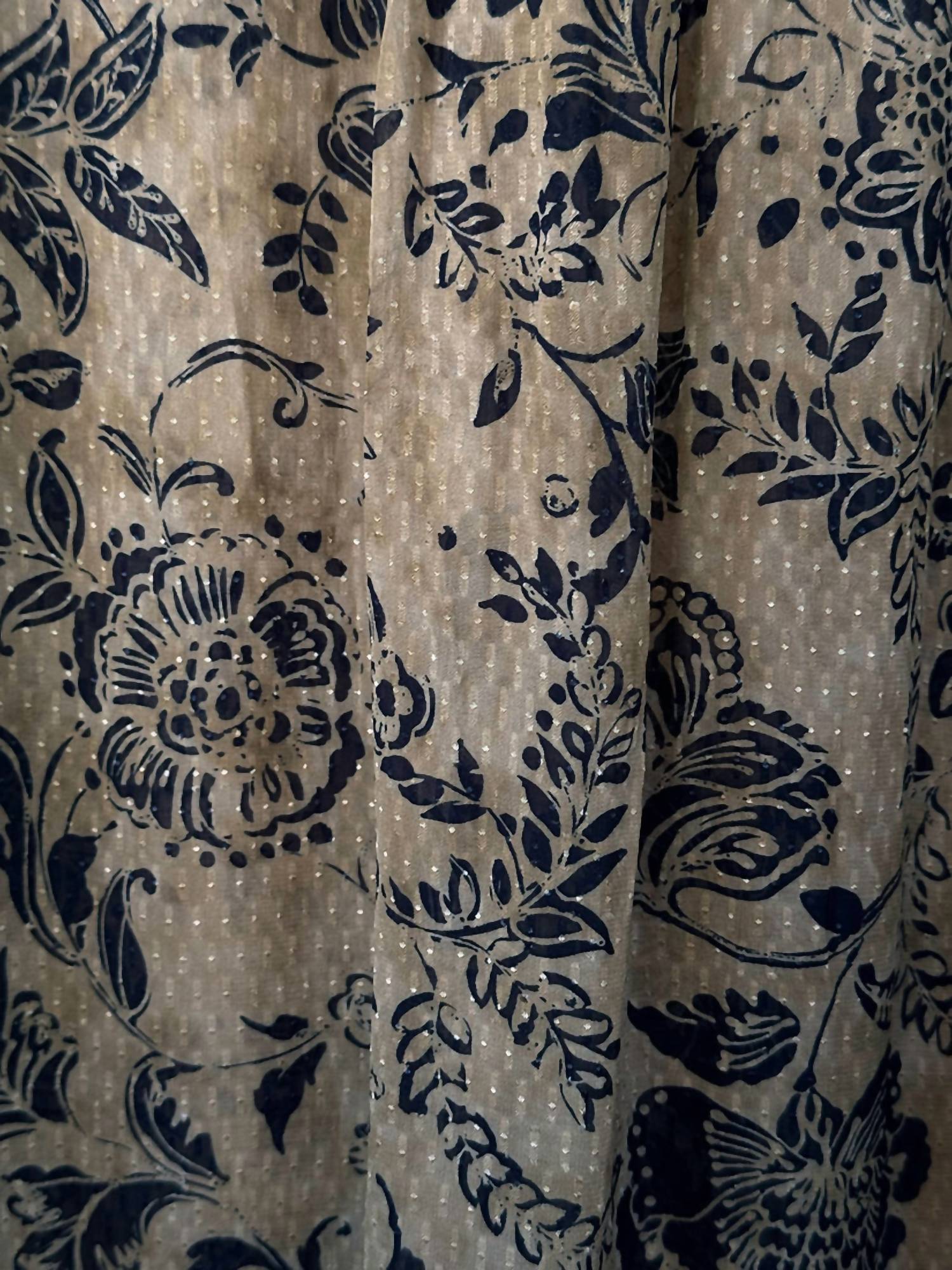 A versatile blouse that works from desk to dinner! Signature Beate Heymann with contrast tie detail at neck. Long sleeves with elastic cuff. Little bit of Shimmer.