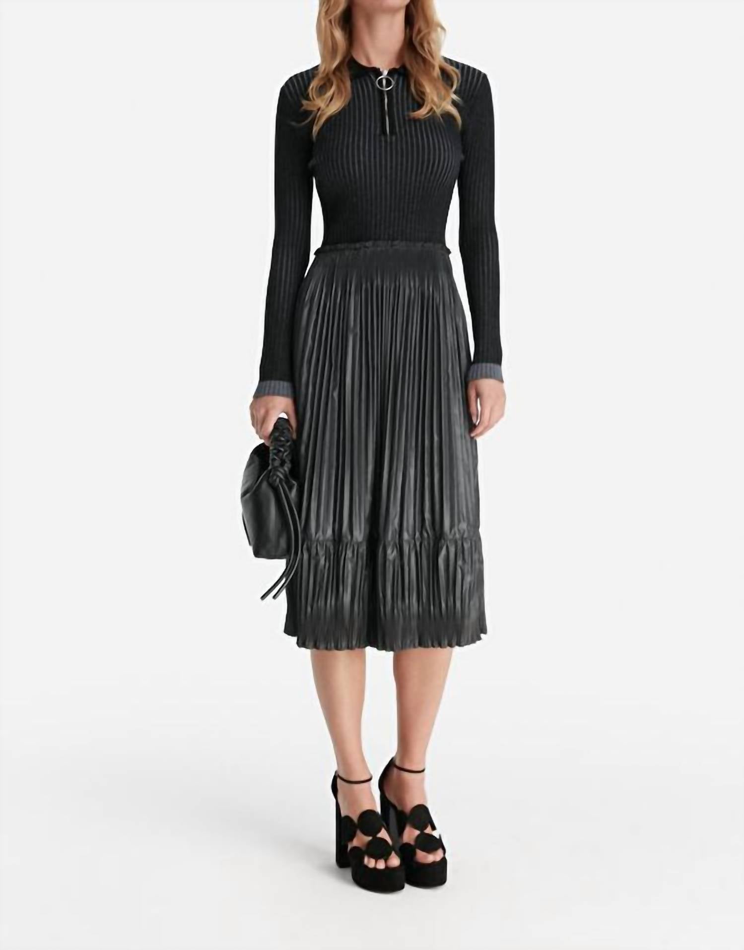 A midi dress so versatile, your options for wearing it are endless. Discover the Beatrice .b Long Sleeve Shirt Dress in elegant anthracite-grey, perfect for evening events and versatile workwear. Featuring a textured pattern and an A-line silhouette, this midi-length piece is tailored from a luxurious viscose blend. Designed without pockets for a sleek look, it offers a modern zip closure and a classic collar neckline. Care for this sophisticated dress by hand washing and laying flat to dry, ensuring it remains a timeless staple for spring occasions.