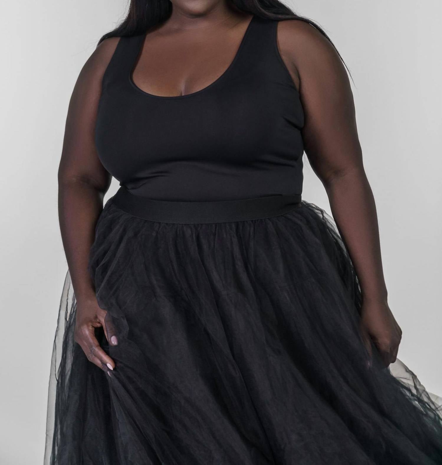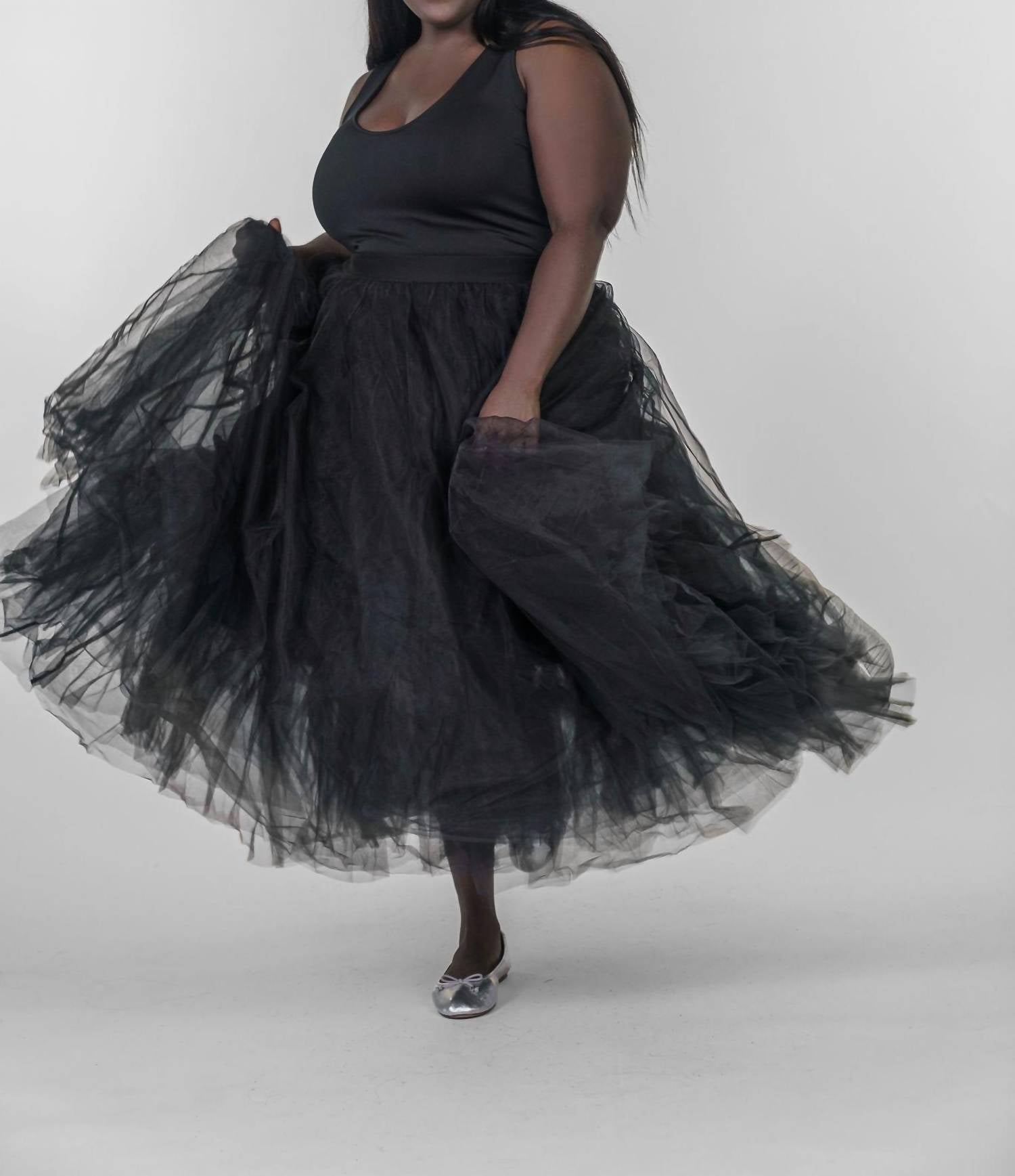 Who doesn't love a good maxi skirt? Introducing the Cirque Tulle Maxi Skirt by Bitte Kai Rand, a striking black skirt designed for festive occasions. Made from 100% textured polyester, this elegant maxi skirt is crafted with multiple layers of tulle to create an ethereal effect. The pull-on closure ensures seamless wear while the beautifully defined waist offers a flattering silhouette. Care is easy with machine wash and tumble dry instructions, making it a practical yet standout piece for your holiday party wardrobe. Available in plus sizes, including XL and XXL.