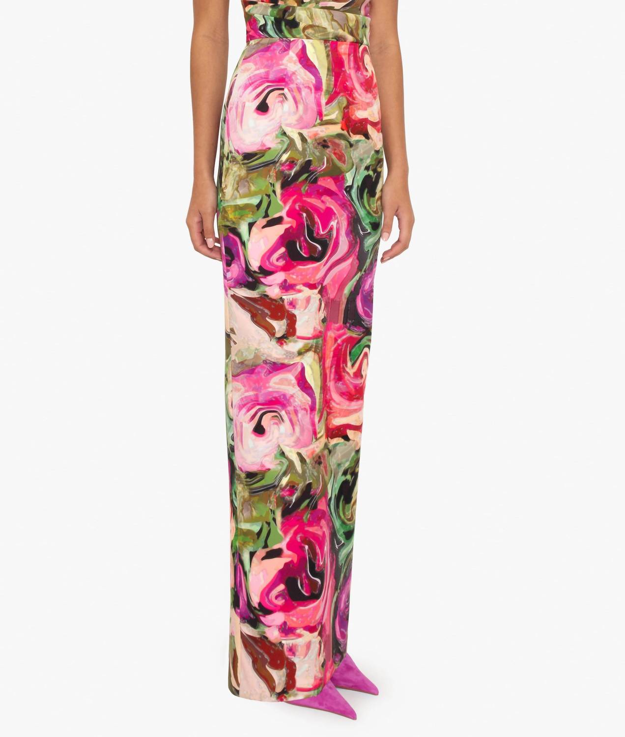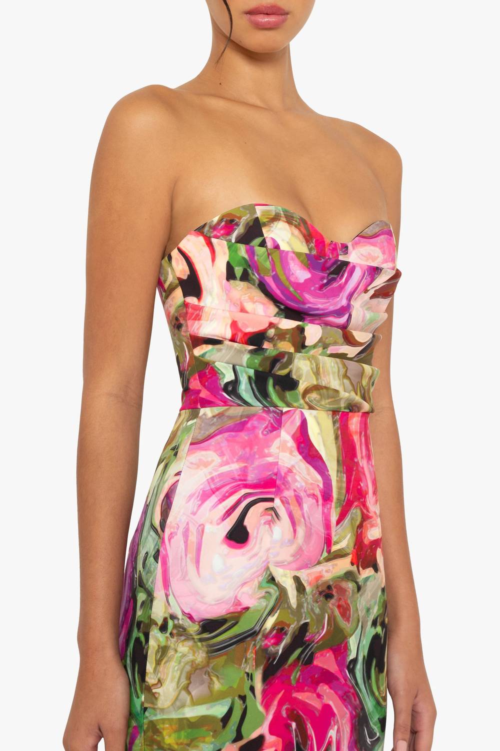 A maxi dress that is just as cute as it is comfortable. Make an unforgettable entrance with the Leonora Gown by Black Halo, a stunning strapless piece in the bold Floral Flow pattern. Crafted from 88% Polyamide and 12% Elastane, this sheath maxi dress flaunts a structured bodice with a cup detail and draped overlay for a flattering silhouette. Proudly made in the USA with imported materials, this gown secures with a zip closure. Care for this elegant evening wear by dry cleaning it with care.