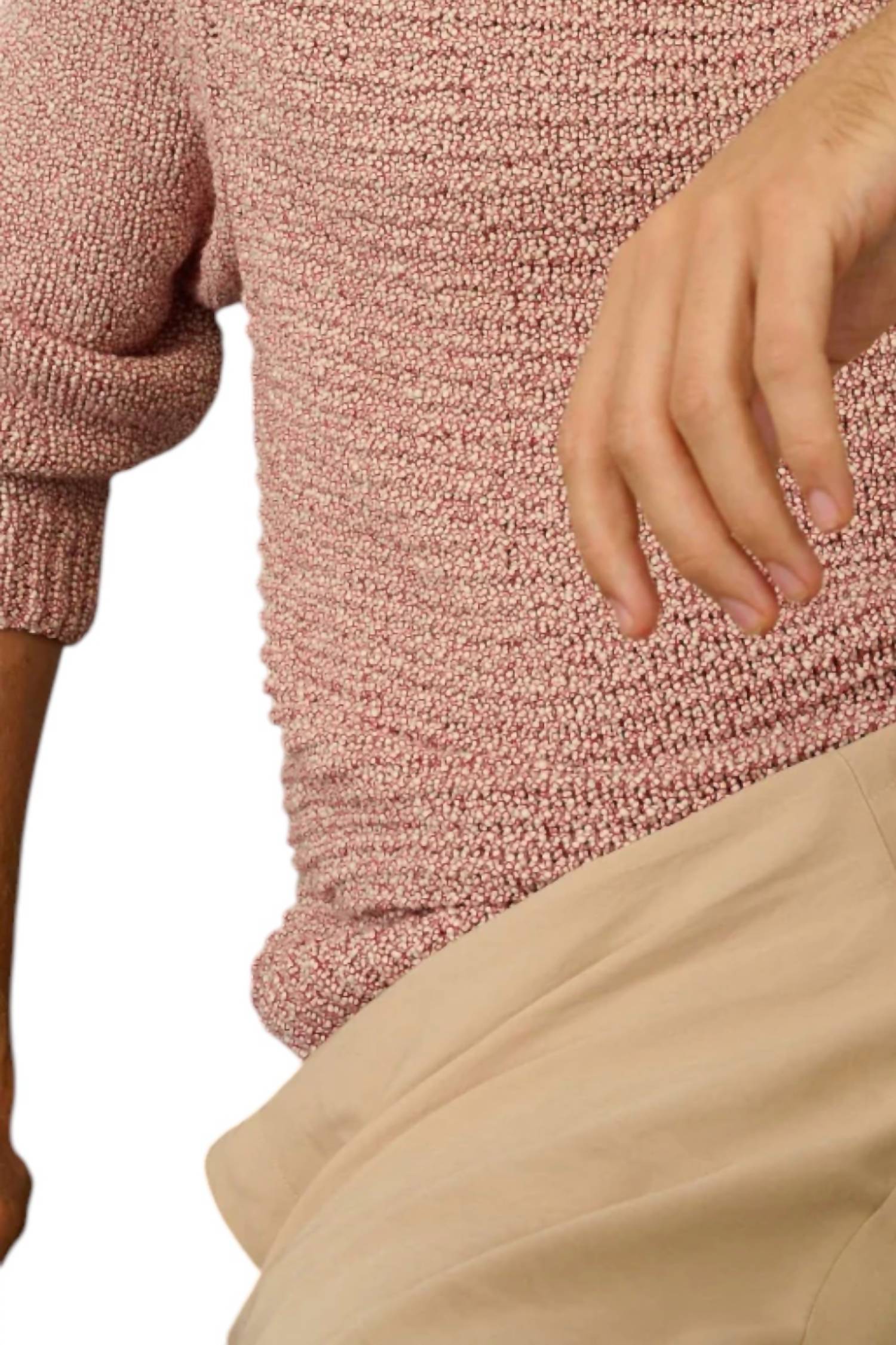 The ultimate go-to sweater, expertly crafted to provide the perfect combination of warmth and style. Its classic design and soft fabric make it a must-have addition to your wardrobe. Experience cozy elegance with the Lille Textured Sweater by Cesar Casier, a perfect addition to your fall wardrobe. Featuring long sleeves and an easy pull-on design, this women's crewneck is crafted from organic cotton for comfortable wear. Ideal for travel or Thanksgiving gatherings, its true-to-size fit ensures a flattering silhouette. The rich red hue and textured pattern lend a preppy touch to your seasonal style.