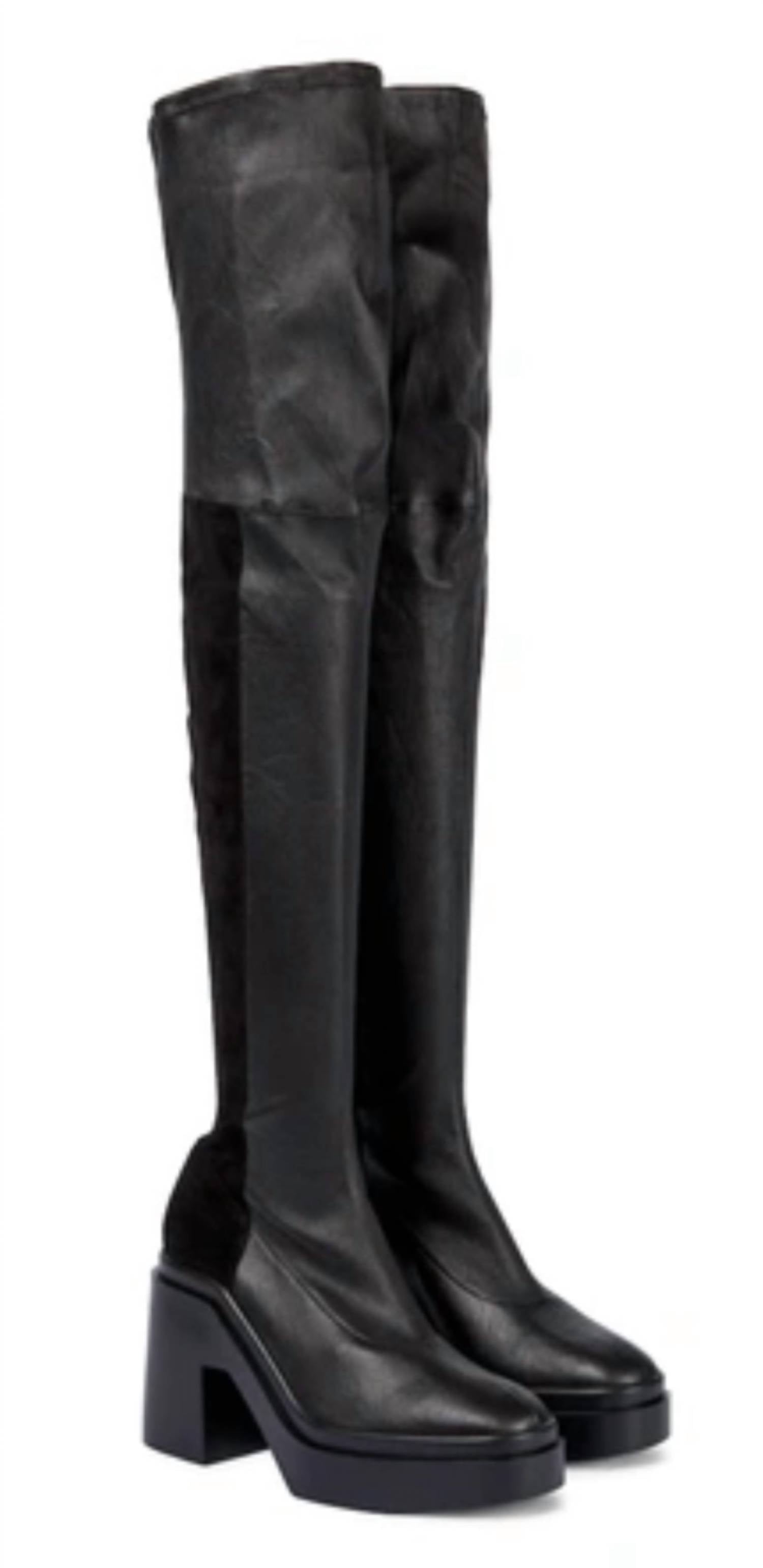 Upgrade your shoe game with these classic heeled boots, designed to merge sophistication and style. Comfortable enough for long days or a night out on the town. Step into the season with Clergerie's Naelle Over The Knee Leather Boots, a striking fashion statement in timeless black. Crafted in a sumptuous blend of lambskin and stretch velvet, these boots feature exaggerated platform soles and block heels, ensuring both comfort and style with every step. Designed without a traditional closure, they offer a sleek, form-fitting look. Ideal for women seeking a combination of modern edge and classic elegance.