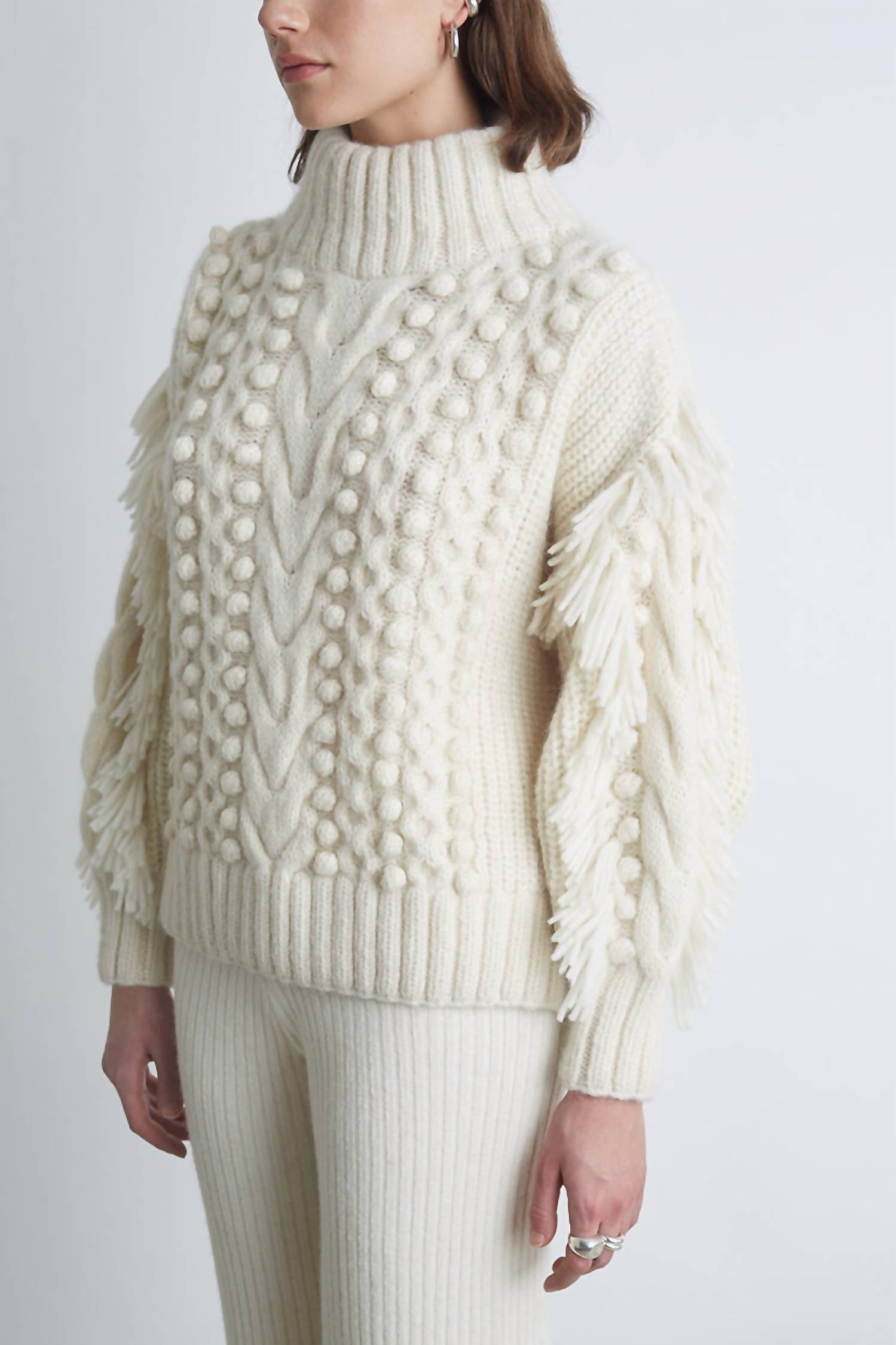 Elevate your winter wardrobe with the Lyla Sweater by ELEVEN SIX, a must-have for vacation minimalism. This women's long sleeve turtleneck offers a textured design in luxurious ivory. Made from a blend of 70% Baby Alpaca, 7% Merino, and 23% Polyamide, the sweater boasts a pull-on closure and is crafted in Peru. For optimal care, dry clean only.