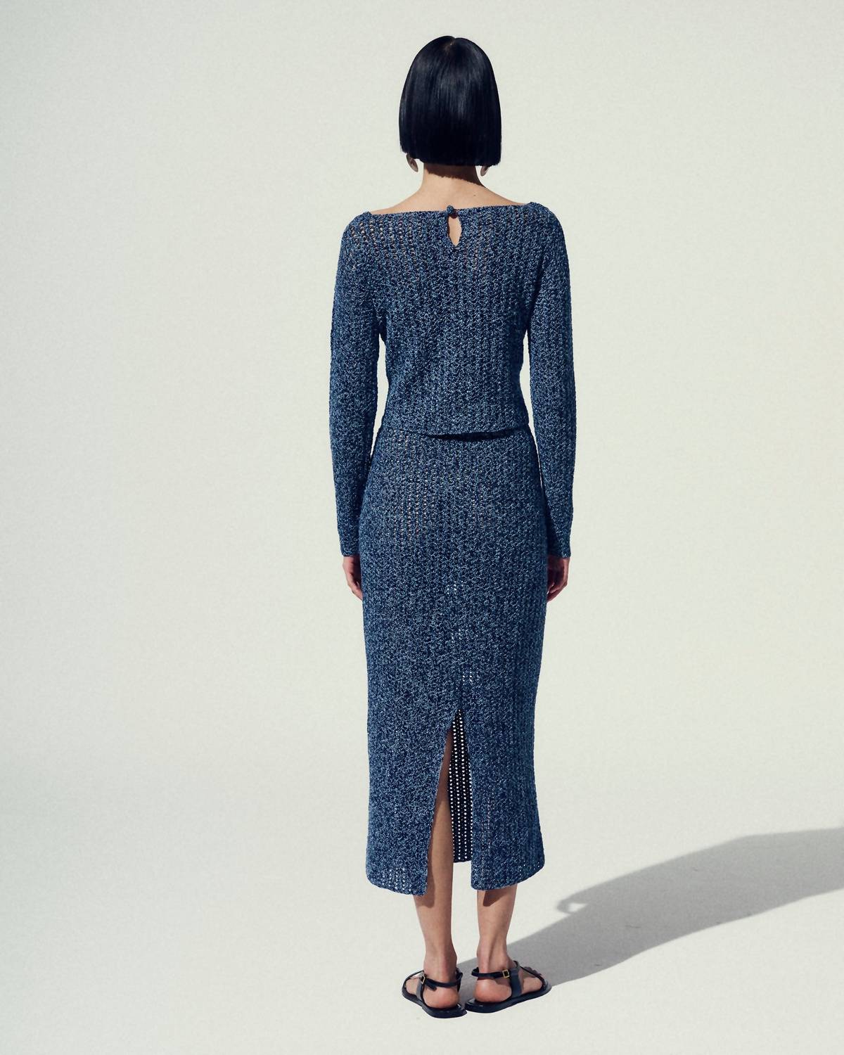 Dress this pencil skirt up with a blazer or down with your favorite tee. So versatile and timeless. Elevate your wardrobe with the Manabi Pencil Midi Skirt by ESCVDO, a quintessential piece inspired by 50s fashion. Crafted from 100% cotton, this blue skirt features a unique "peregrino" stitch, seamlessly blending style with cultural imagery from the Inca and Moche. With a pull-on closure, it offers a true-to-size fit and a sophisticated back opening for a hint of sensuality. For care, machine wash and lay flat to dry.