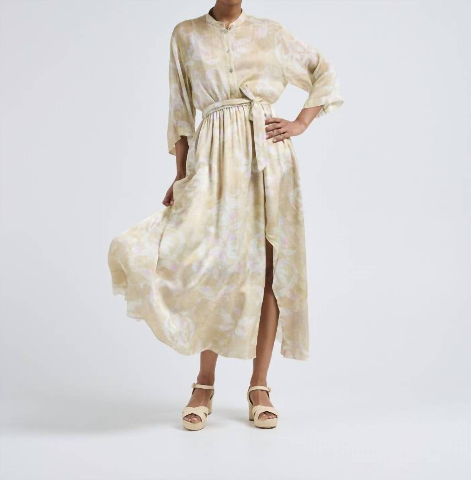 Who doesn't love a good maxi skirt? This floral printed skirt is crafted from smooth viscose satin and designed with an ankle-length, flowy silhouette. An elasticated waistband with a self-tie ensures comfort and adjustability, while a front slit detail adds ease of movement and a touch of elegance.