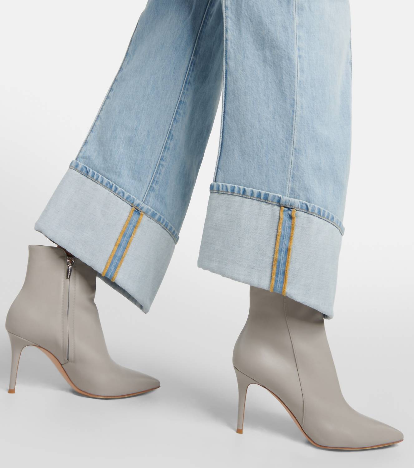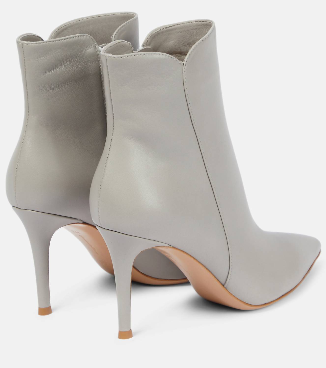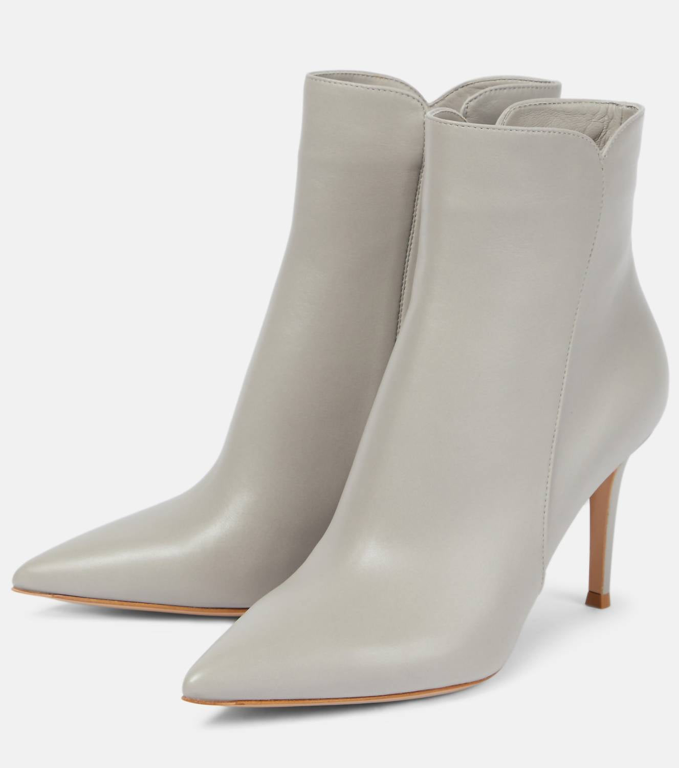 Step into elegance with the Levy 85mm Boots by Gianvito Rossi, featuring a sleek pointed toe and soft leather composition. This Italian masterpiece is distinguished by its curved upper edge detail and tonal stitching. Crafted from 100% Nappa leather, these heeled boots boast a striking 3.3-inch stiletto heel. Perfect for making a sophisticated statement in shadow color.