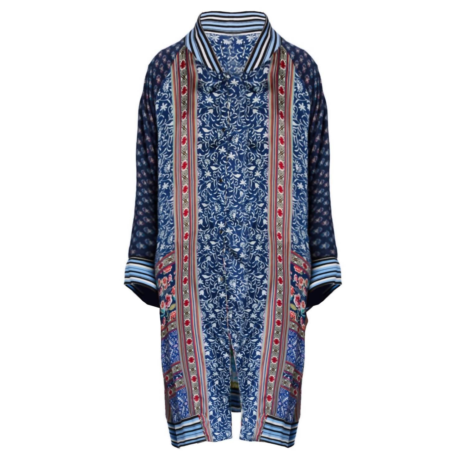 A classic fit that works just as good buttoned as it does left open.Silk. Reversible. Side Slip Pockets. Baseball Collar. Dry Clean.
