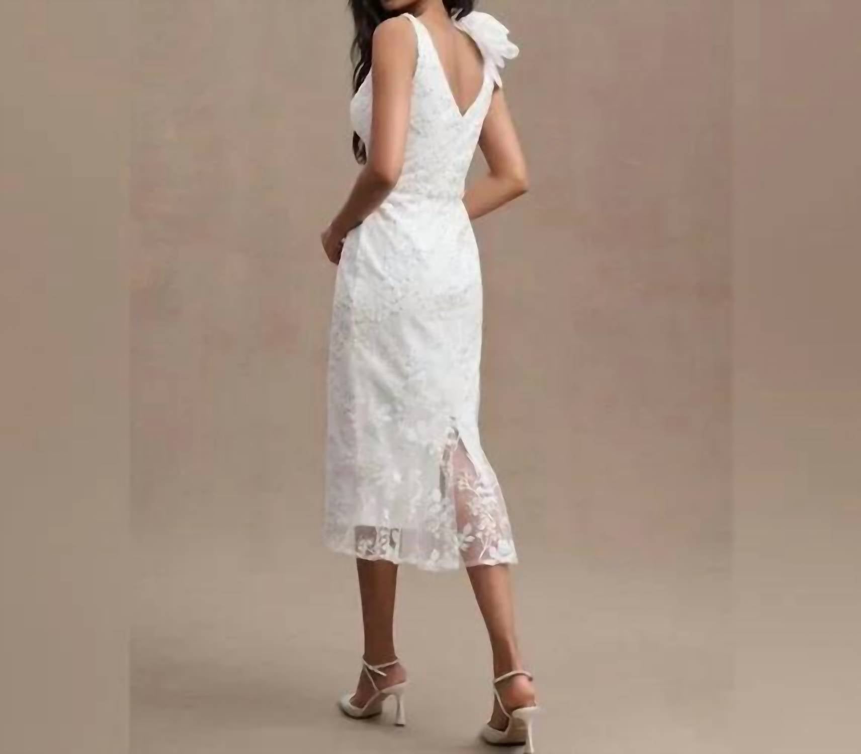 Just add a cute little clutch and a matching heel for the perfect event look. Introducing the Beaded Floral Tea Length Gown by Mac Duggal, an exquisite choice for any special occasion. This sleeveless gown, crafted from 100% polyester, features a stunning floral beaded mesh overlay. With a flattering v-neck and dramatic rosette shoulder, it reaches an elegant mid-length of approximately 48 inches. Made with precision, the gown is fully lined and features a convenient back zipper closure. For best results, dry clean only.