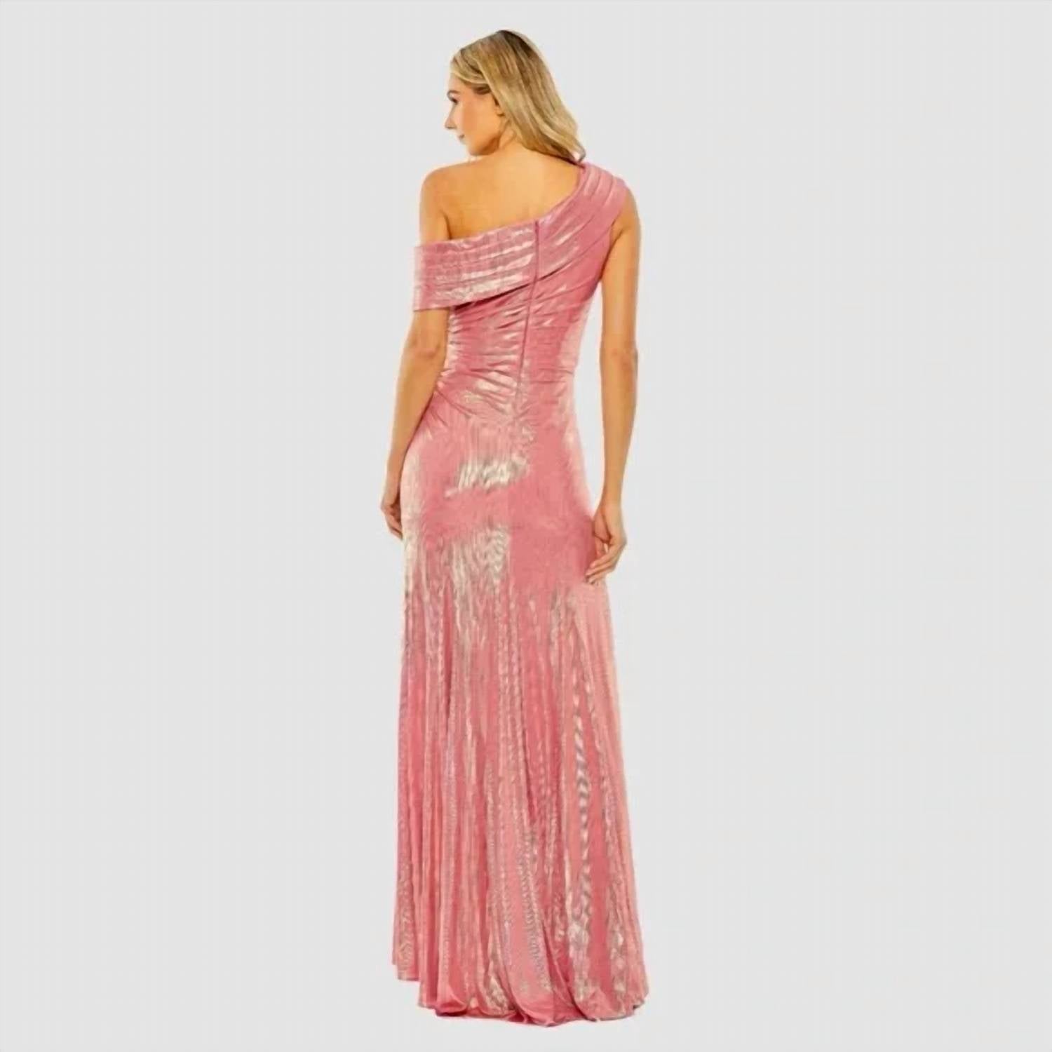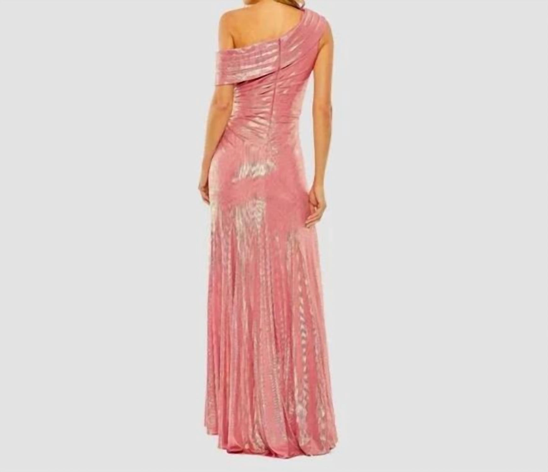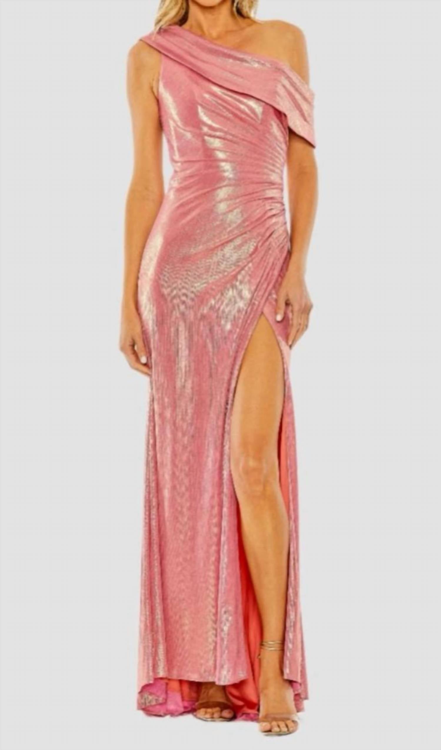 Mac Duggal - Metallic Off The Shoulder Ruched Waist Slit Gown