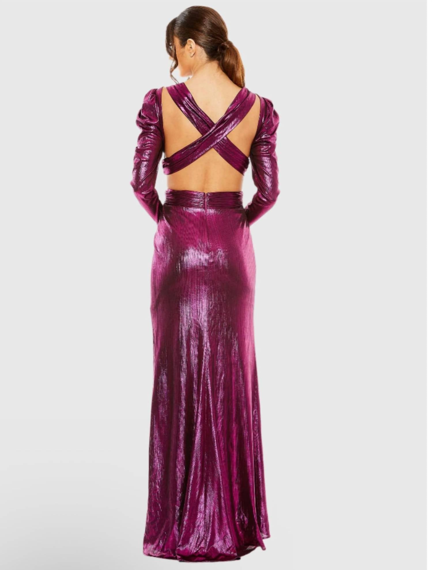 Mac Duggal - Princess Sleeve Cut Out Metallic Gown