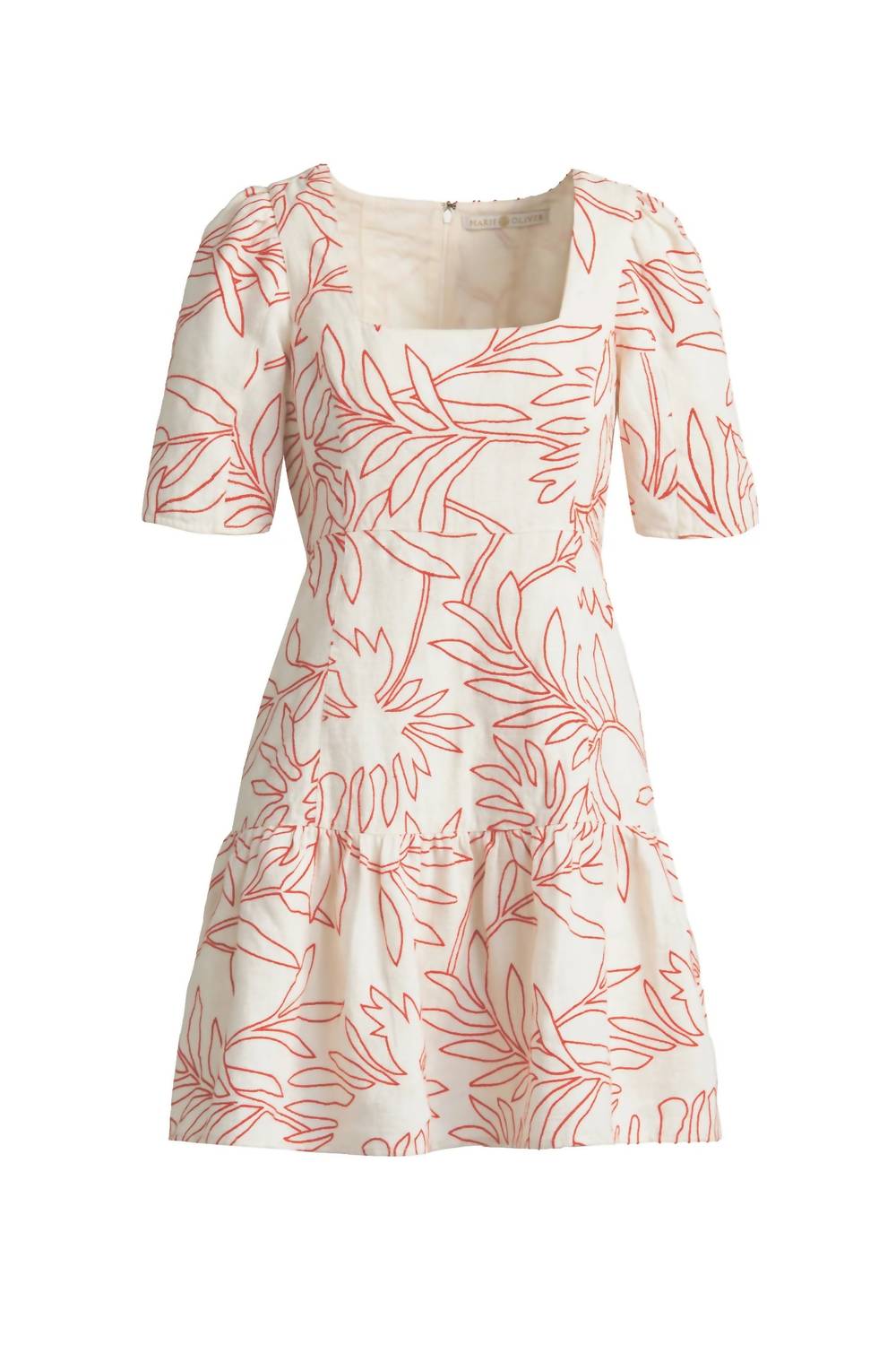 A short and breezy dress for those warmer days. Embrace tailored sophistication with the Temma Mini Dress by Marie Oliver, adorned in the vibrant Tigerlily print. This exquisite piece features short sleeves, a modern square neckline, and princess seams, crafted from 100% linen with embroidery stitch detail for a form-flattering fit. Lined for comfort, it secures with a center back invisible zipper and a hook & eye closure. For care, machine wash separately on a cold delicate cycle and lay flat to dry.