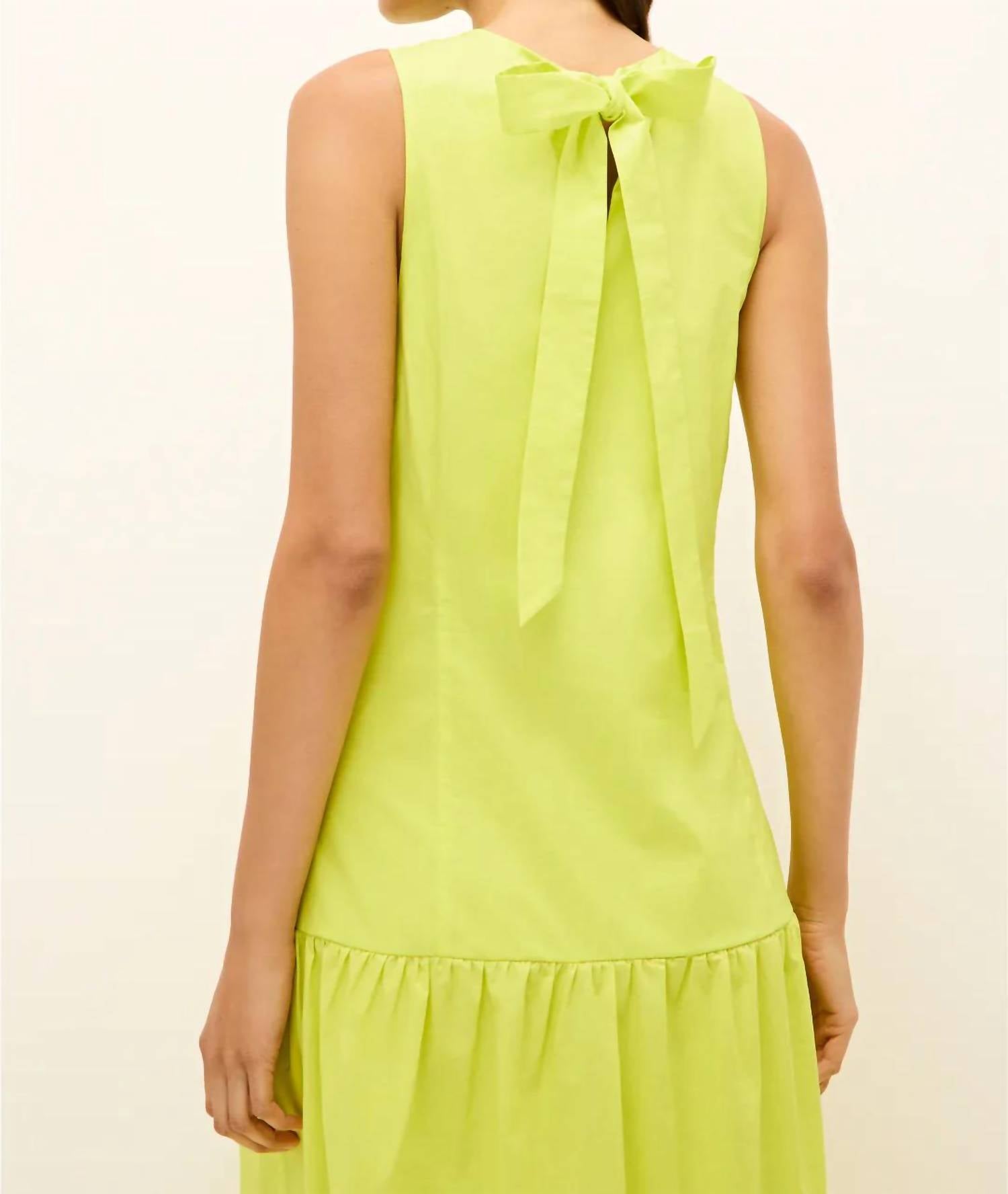Introducing the Zelda Dress by Marie Oliver, crafted for warm vacation vibes in vibrant Sunshine yellow. This sleeveless maxi dress, made from 100% cotton poplin, features an elegant drop waist and a stylish bow-back detail. It offers an effortless boatneck neckline and an A-line silhouette perfect for minimalist summer trends. Closure: Center back invisible zipper with hook and eye, plus keyhole ties. Care: Machine wash on a gentle cycle and line dry.