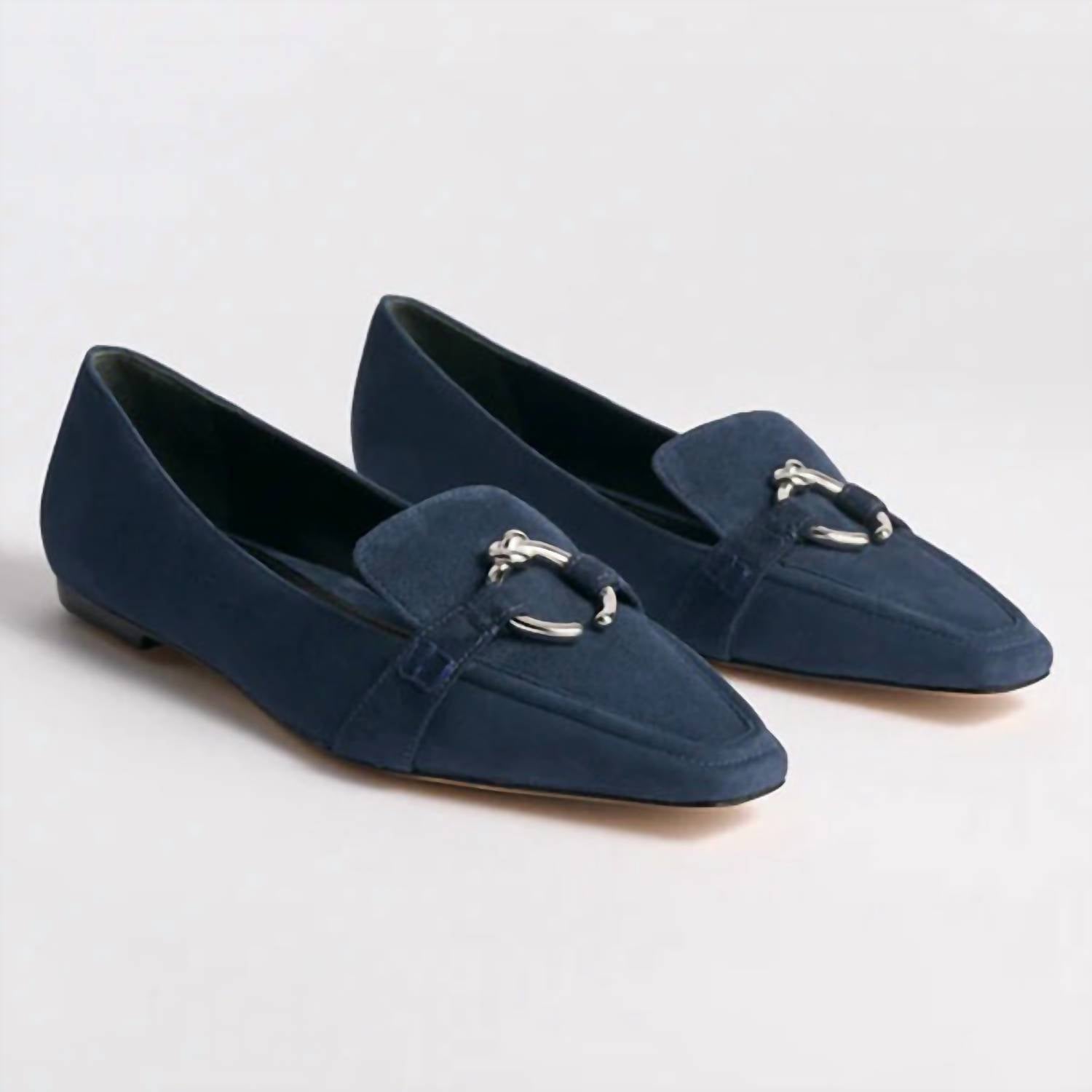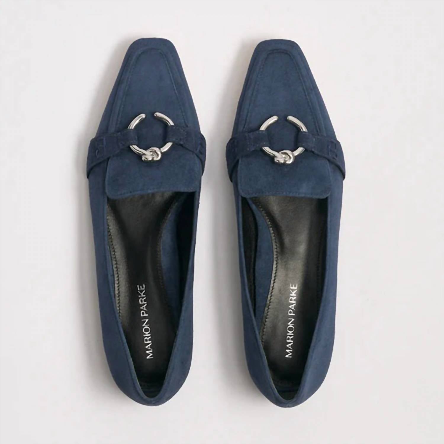 A classic loafer that is both comfortable and polished. Step into elegance with the Women's Morgan Flat Shoe by Marion Parke, ideal for a sophisticated dinner party or a casual spring outing. Crafted in a chic navy hue, this shoe features a squared toe and a flat heel for seamless comfort and style. Perfectly designed for women, it effortlessly complements both formal and casual attires. Embrace timeless fashion with these versatile flats.