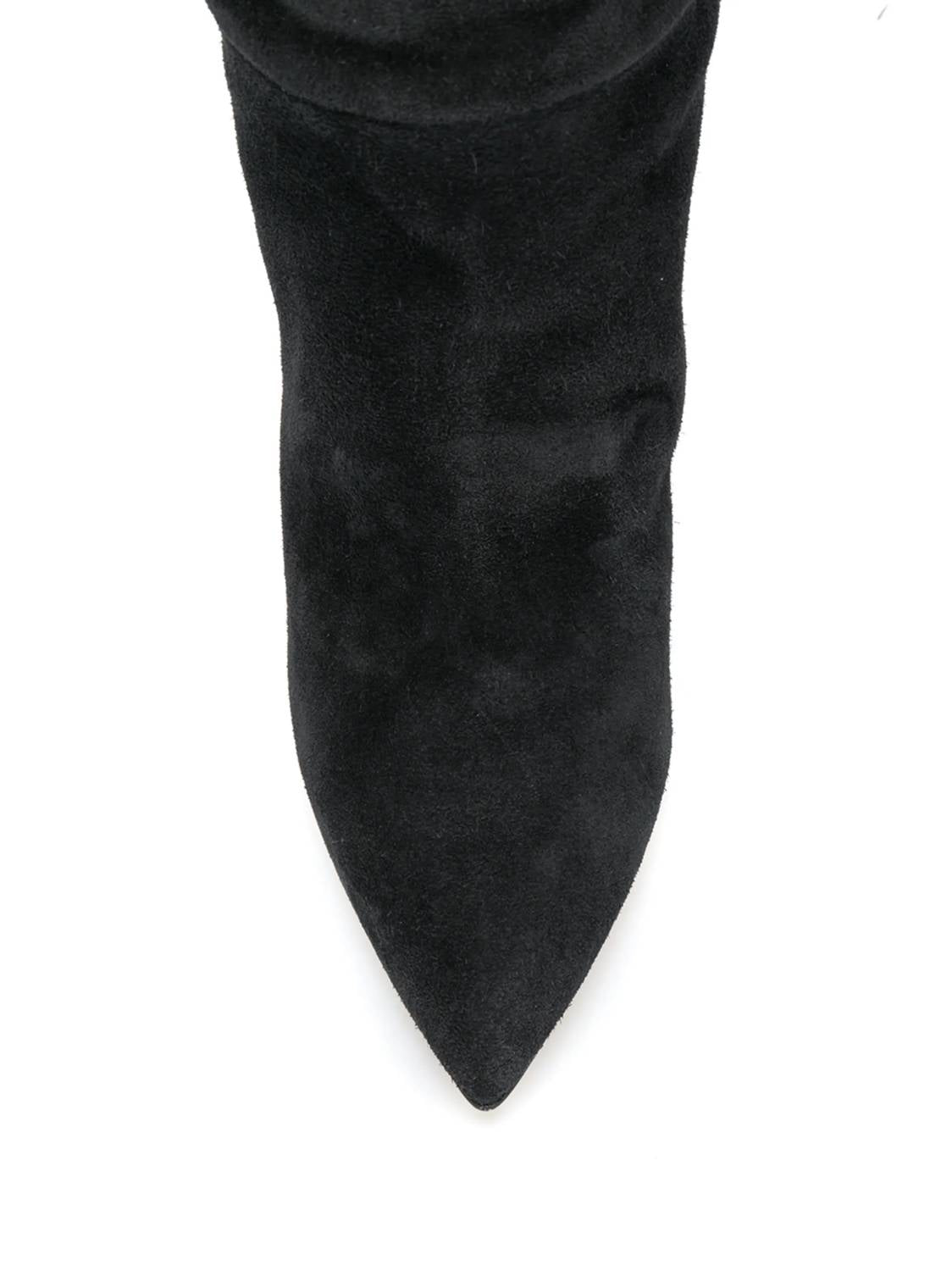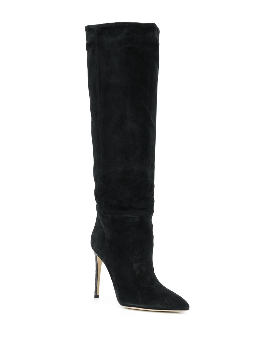 A stylish boot with a comfortable fit and the perfect amount of height. These classic boots are the perfect addition to any outfit and can be worn season after season. Step into style with the Women's Pointed Toe Knee-high Boots by Paris Texas in a chic Angora hue. These boots are crafted from luxurious suede and feature a striking 4.13-inch croc-embossed leather stiletto heel that effortlessly adds bold flair to your ensemble. Made in Italy, they balance the label's fashion-forward sensibilities perfectly. Ideal for pairing with mid-length hemlines, these boots are a must-have for elevating your wardrobe.