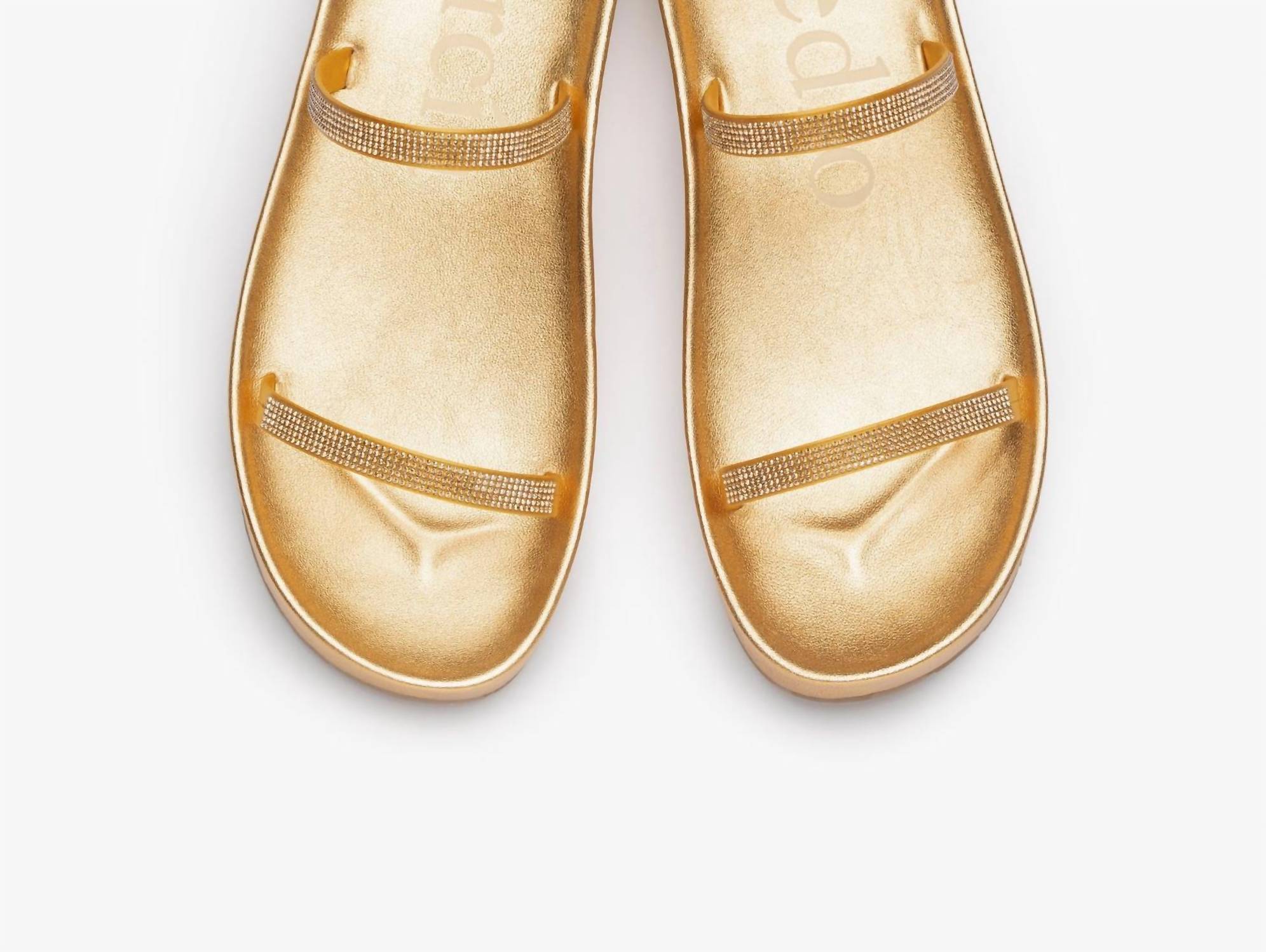 This sandal will take you from brunch to dinner and everything in between. Embrace boho chic elegance with Pedro Garcia's Women's Alania Sandal, designed specifically for summer vacations. Crafted in luxurious gold nappa lame, these sandals feature an open toe shape and a flat heel for both style and comfort. Perfect for women seeking an effortless yet trendy look, they complement any summer ensemble.