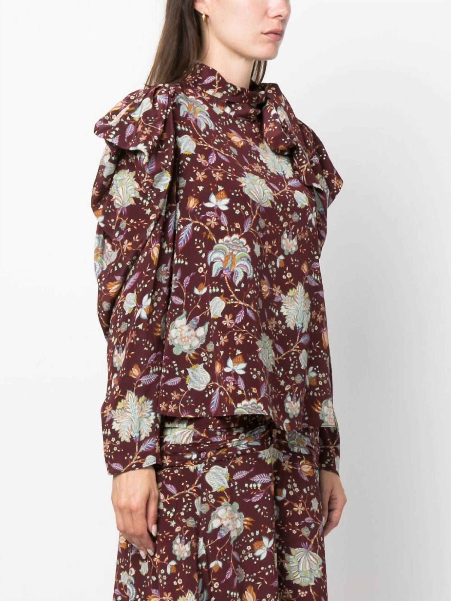 A timeless blouse that will never go out of style.100% Silk. Brea Silk Long Sleeve Tie Bow Top Blouse Multi. Approx. 24”L from shoulder to hem. patterned floral print. ruched detailing. pussy-bow collar. mock neck. side tie fastening. long sleeves. The model is 5 ft 10 in wearing size 2 (US).