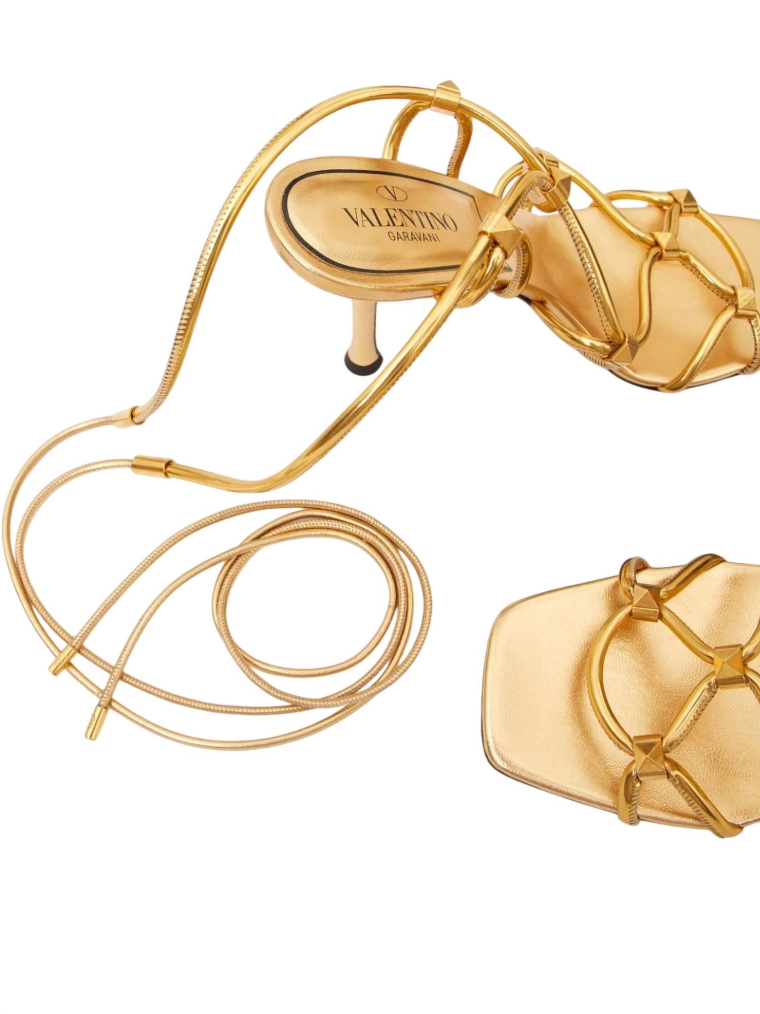 This sandal will take you from brunch to dinner and everything in between. Features a lace-up tie closure. Pointed heel. Open toe. Sole: Calf Leather 100%. Lining: Lambskin 100%.
