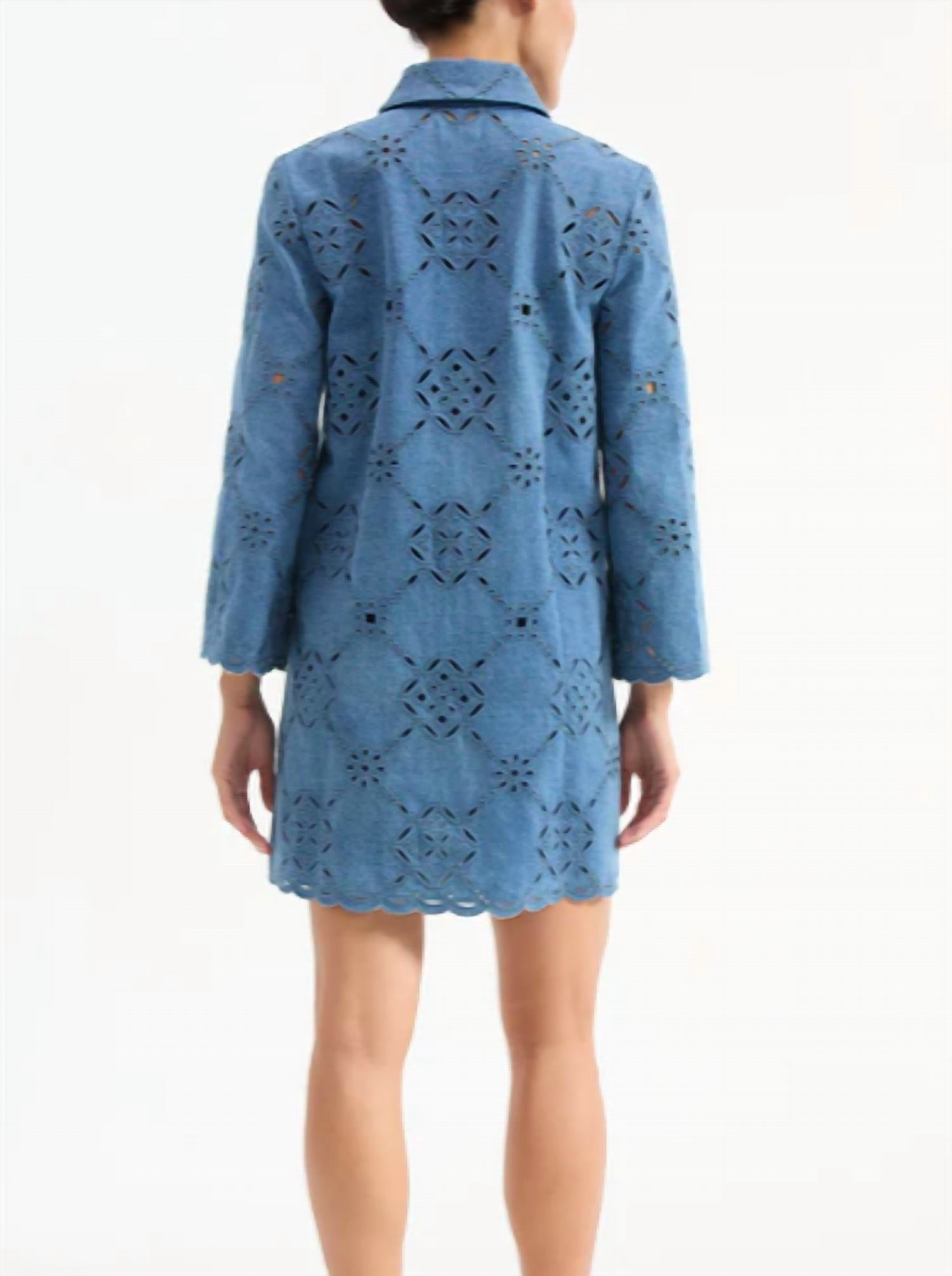 A feminine take on the denim shirtdress, the Adelaide is cut from 100% cotton with an elongated silhouette, eyelet accents, and scalloped edges. Finished with patch pockets and covered buttons, it’s easy to style with sneakers or espadrilles.