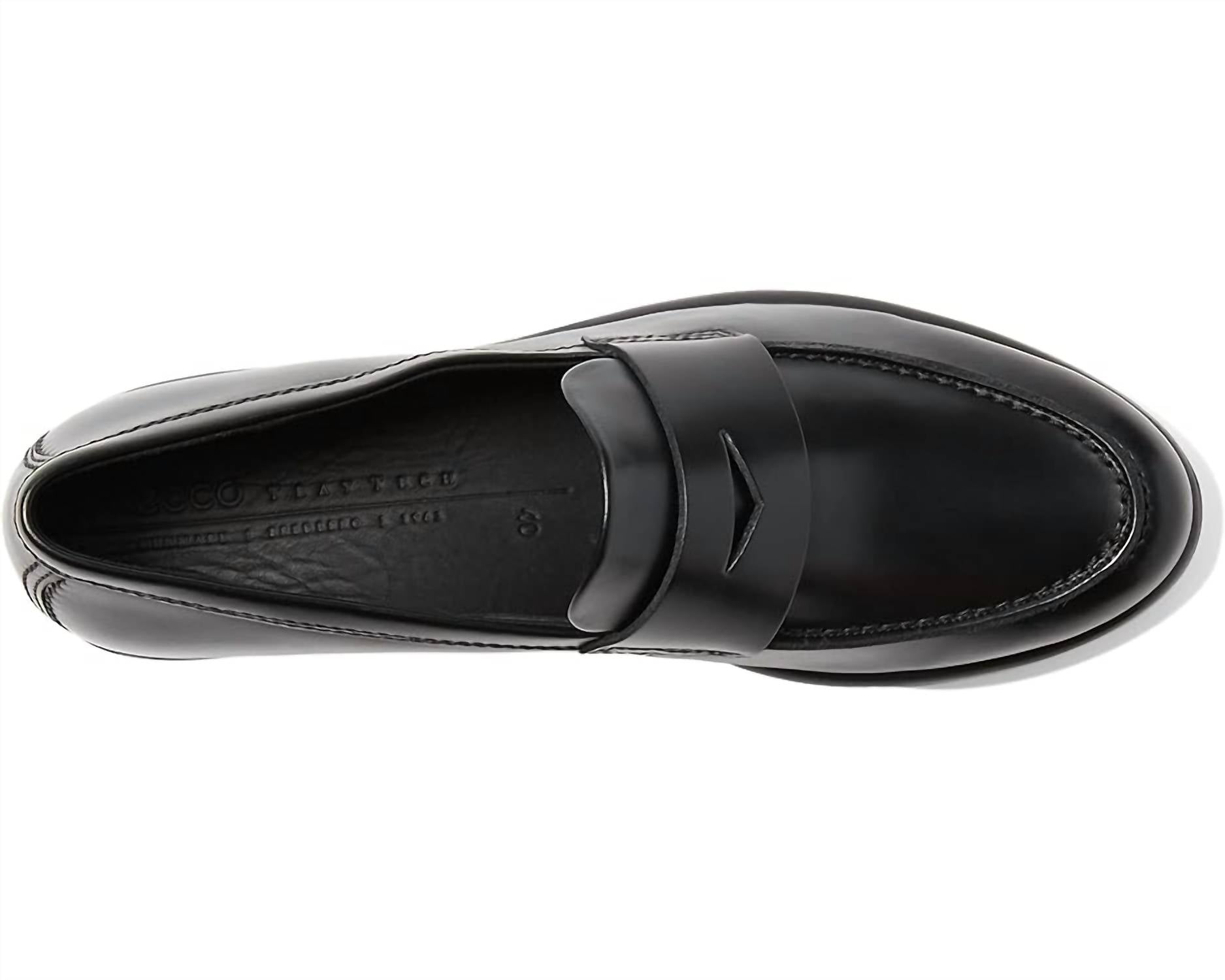 This moc-toe penny loafer brings an edgy twist to a timeless silhouette, crafted from smooth full-grain leather with refined detailing. Set on a lightweight lugged sole for added height, it blends sophisticated street style with all-day versatility—perfect for both everyday wear and office-ready looks.