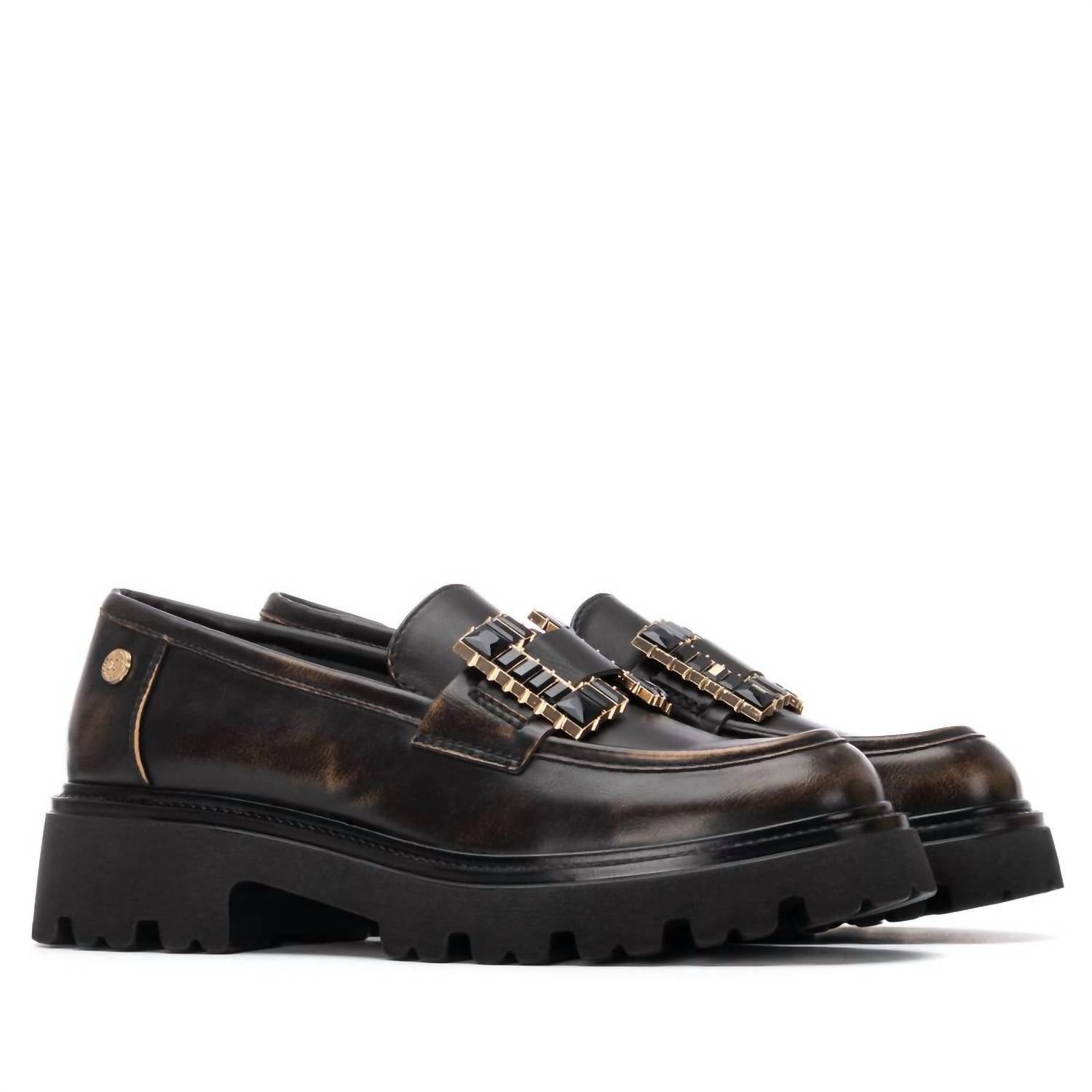 A preppy yet feminine take on the classic loafer. Enhance your wardrobe with the Xti Women's Round Toe 144429 Shoes, an embodiment of quiet luxury in a striking bronze hue. Crafted from high-quality leather, these shoes feature a round toe design and a platform heel for added style and comfort. Perfect for a range of occasions, from back-to-school events to Thanksgiving celebrations. Embrace the blend of fashion and function exclusively designed for women this spring season.