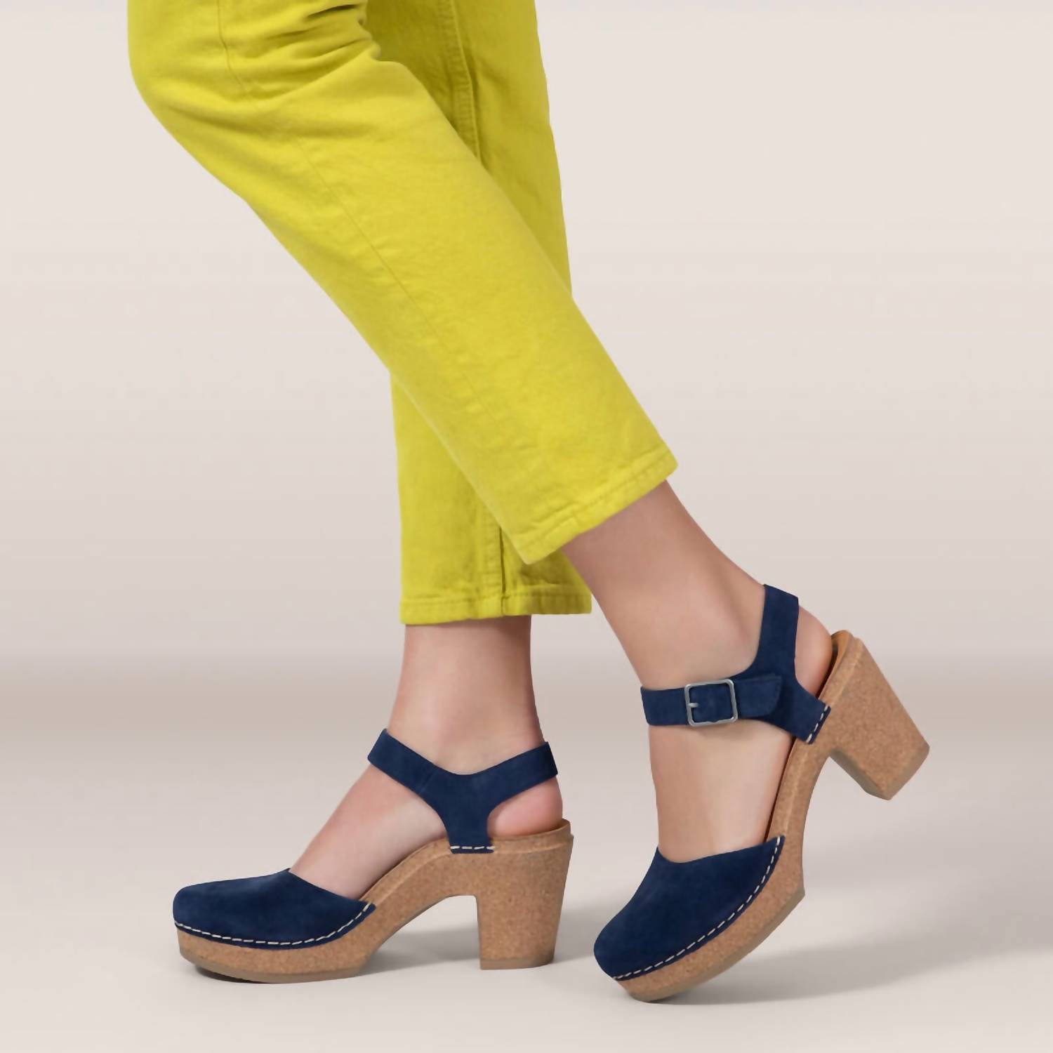 Don't be deceived, these heels are comfy as can be. Introducing the Women's Finley Closed Toe Heel by Aetrex, a sophisticated choice in navy designed for elegance and comfort. With a genuine leather upper and hook and loop closure, this high 3.25-inch block heel is not just stylish but also supportive. The built-in Aetrex Orthotic System with arch support and a memory foam footbed ensures stability and alleviates common foot pains. The lightweight cork midsole and durable rubber outsole make it perfect for any summer dinner party.
