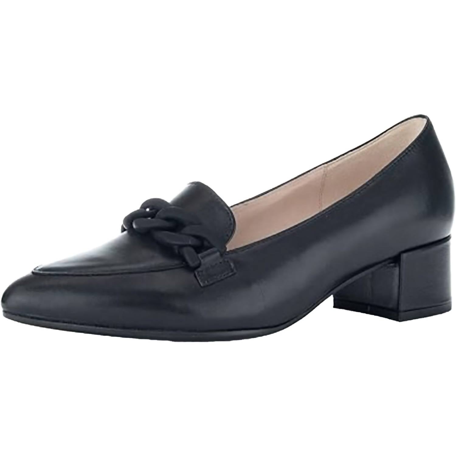 Elevate your office ensemble with the Gabor Women's Schwarz Heeled Pumps, the epitome of sophisticated comfort. Crafted from 100% leather, these medium width heels feature a pointed toe and a low block heel (1 1/4"-2"), perfect for those long days on your feet. Designed with a cushioned footbed, they provide exceptional support and durability, essential for lasting wear. Ideal for the minimalist trend this Spring and perfect for New Year's Eve or a dinner party.