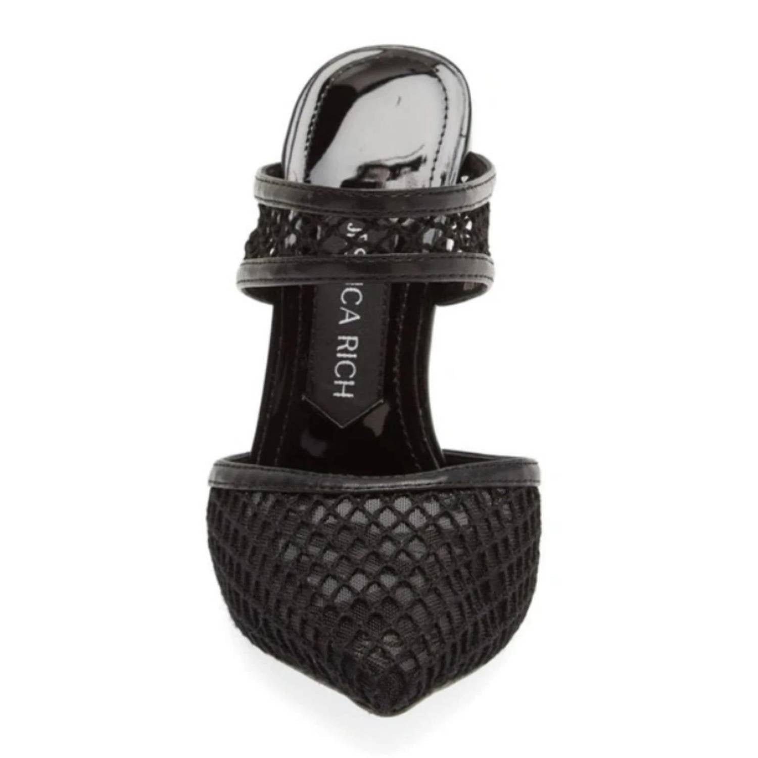 The perfect height for day to night. Elevate your evening ensemble with the Women's Ysabelle Fishnet Pointed Toe Heels by Jessica Rich, exuding minimalist charm in classic black. These pumps feature a captivating fishnet upper and are balanced by a pointed toe and sleek stiletto heel, perfectly suited for spring occasions. Composition: Synthetic and textile upper with synthetic lining and sole. Imported craftsmanship ensures quality and elegance for any event.