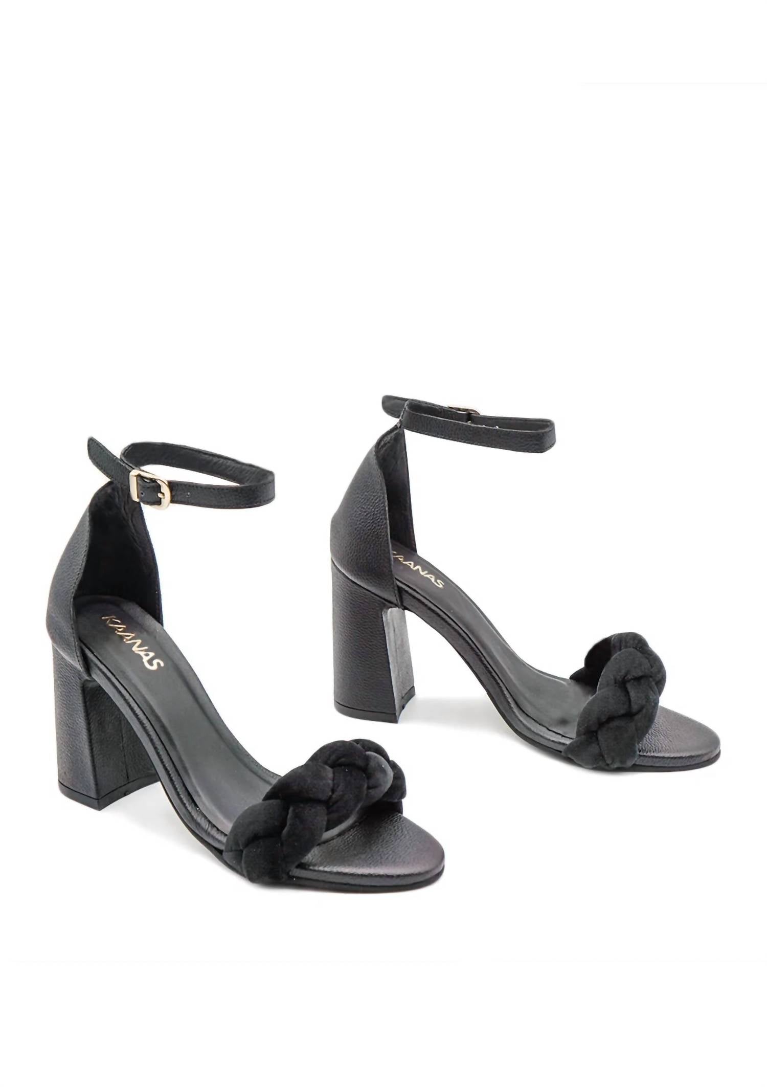 Step into style with the Women's Soho Chunky Heel by KAANAS, a striking choice for your summer cocktail party ensemble. This heel features a chic open toe enhanced by a braided velvet strap, resting on a substantial 7.5 cm block heel. Crafted from synthetic and leather upper, with a leather lining, innersole, and a durable rubber sole, it ensures both sophistication and comfort. Heel height: 2.9 inches. Fit is true to size, with the option to size up for half sizes in regular-width feet.