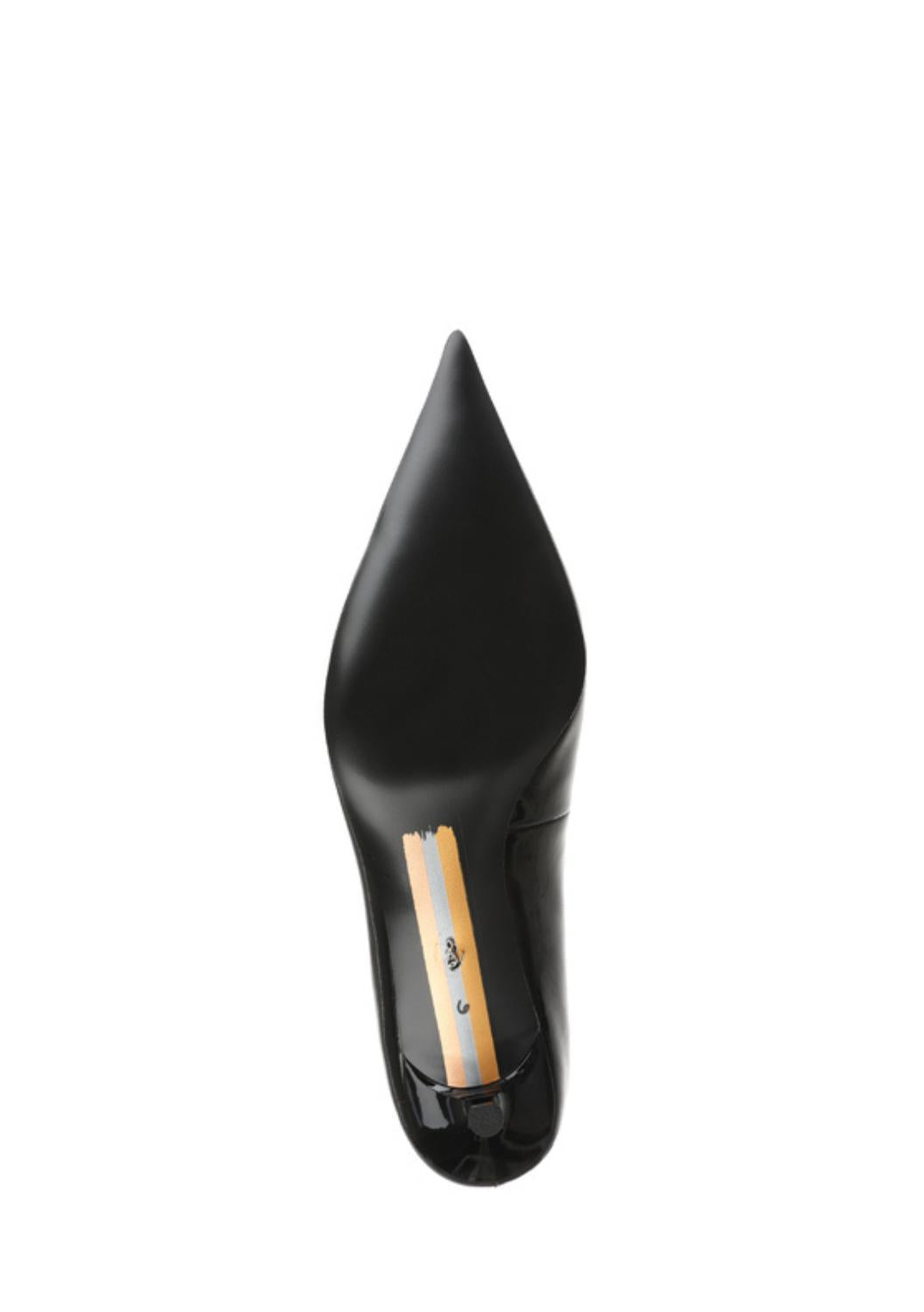 The perfect height for day to night. Introducing the Kaya Pointed Toe Kitten Heel by Sam Edelman, a chic and versatile shoe for any occasion. Crafted in sleek black patent leather with a sophisticated stiletto design, this women's pump features a comfortable 1.625-inch heel. The pointed toe adds a modern flair to the classic kitten heel silhouette. Complete with a synthetic insole, it's perfect for everything from spring workwear to holiday parties.