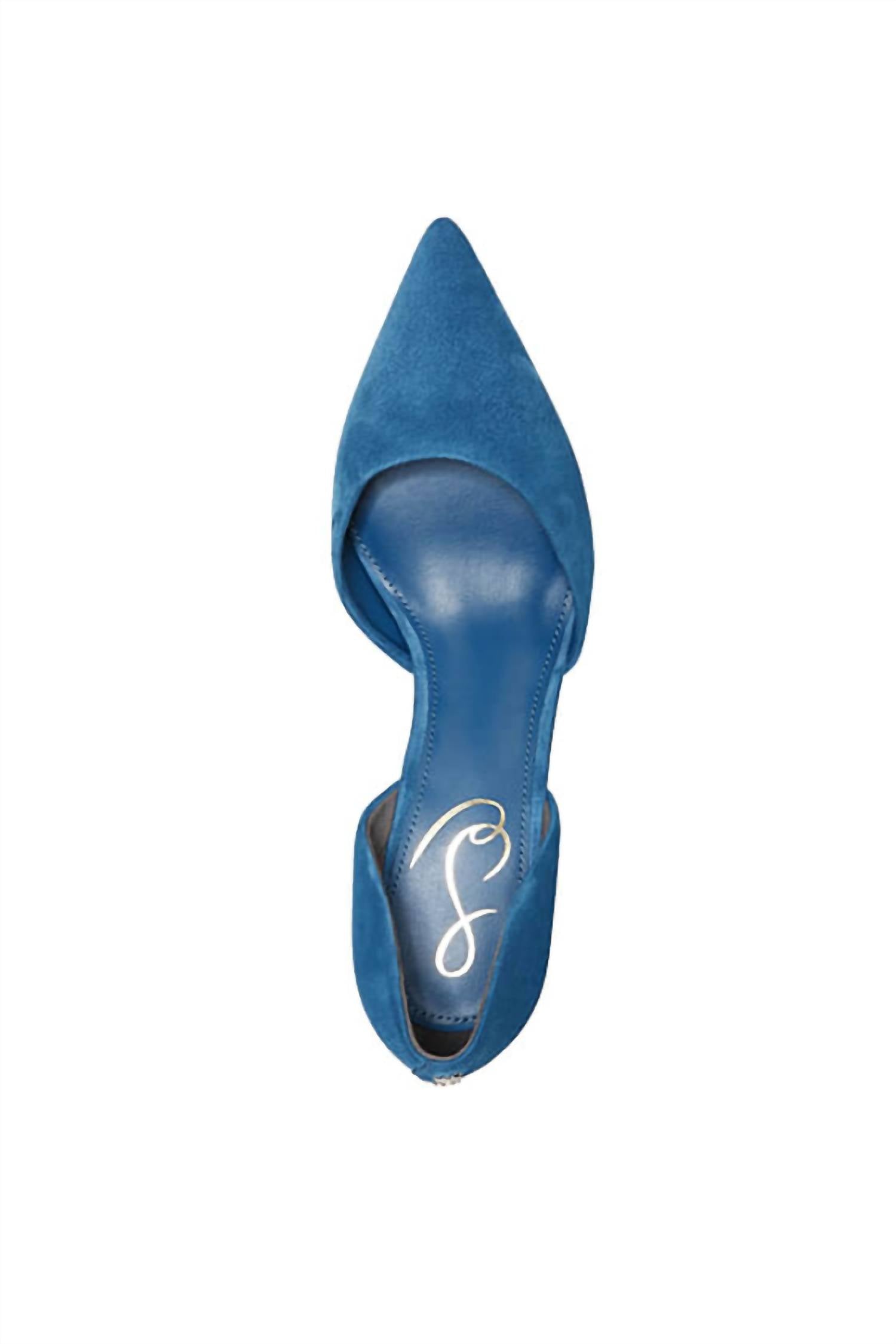 Pair these beauties with your favorite skinny jeans or dress for a night out on the town. Step into elegance with the Viv Pointed Toe Pump Sandals by Sam Edelman, a sleek choice for any evening event. Crafted from rich sapphire leather, these sandals feature a sophisticated pointed toe and a mid-height stiletto heel of 2.8 inches for a touch of "Quiet Luxury." The slip-on closure ensures easy wear, while the synthetic insole offers additional comfort. Designed as a medium-width fit, these pumps are your go-to choice for Spring occasions such as Easter.
