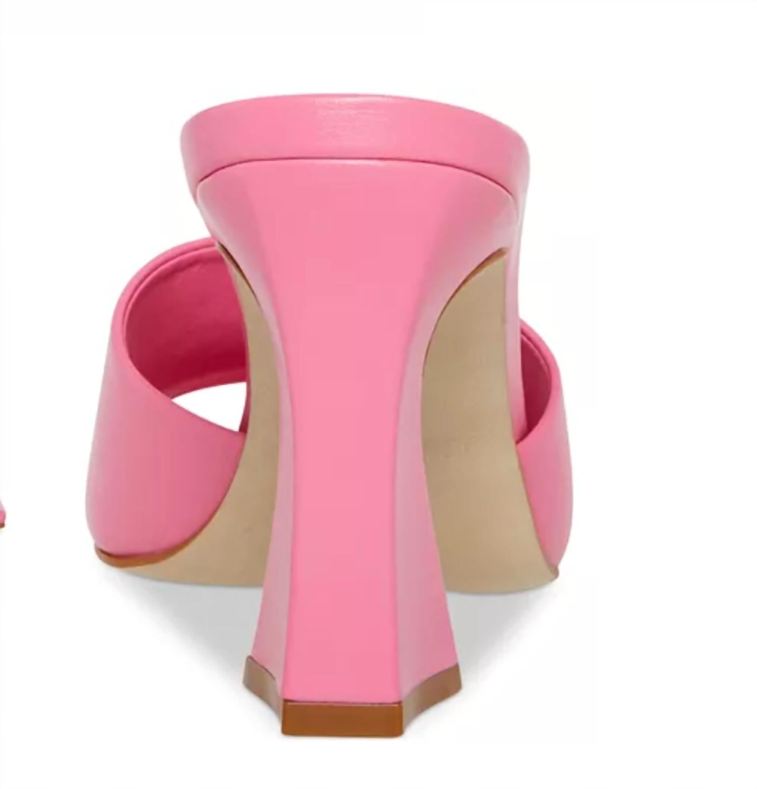 Pair these beauties with your favorite skinny jeans or dress for a night out on the town. Step into elegance with the Women's Square Toe Slip On Sculpted Heel by Steve Madden, perfect for your next evening event. These pink sandals feature an open square toe and a single front strap, accentuating their chic block heel design. With a mid heel height of 2 1/4" to 3", they offer both style and comfort for any Valentine's Day celebration. Ideal for adult women seeking a combination of sophistication and modern flair.
