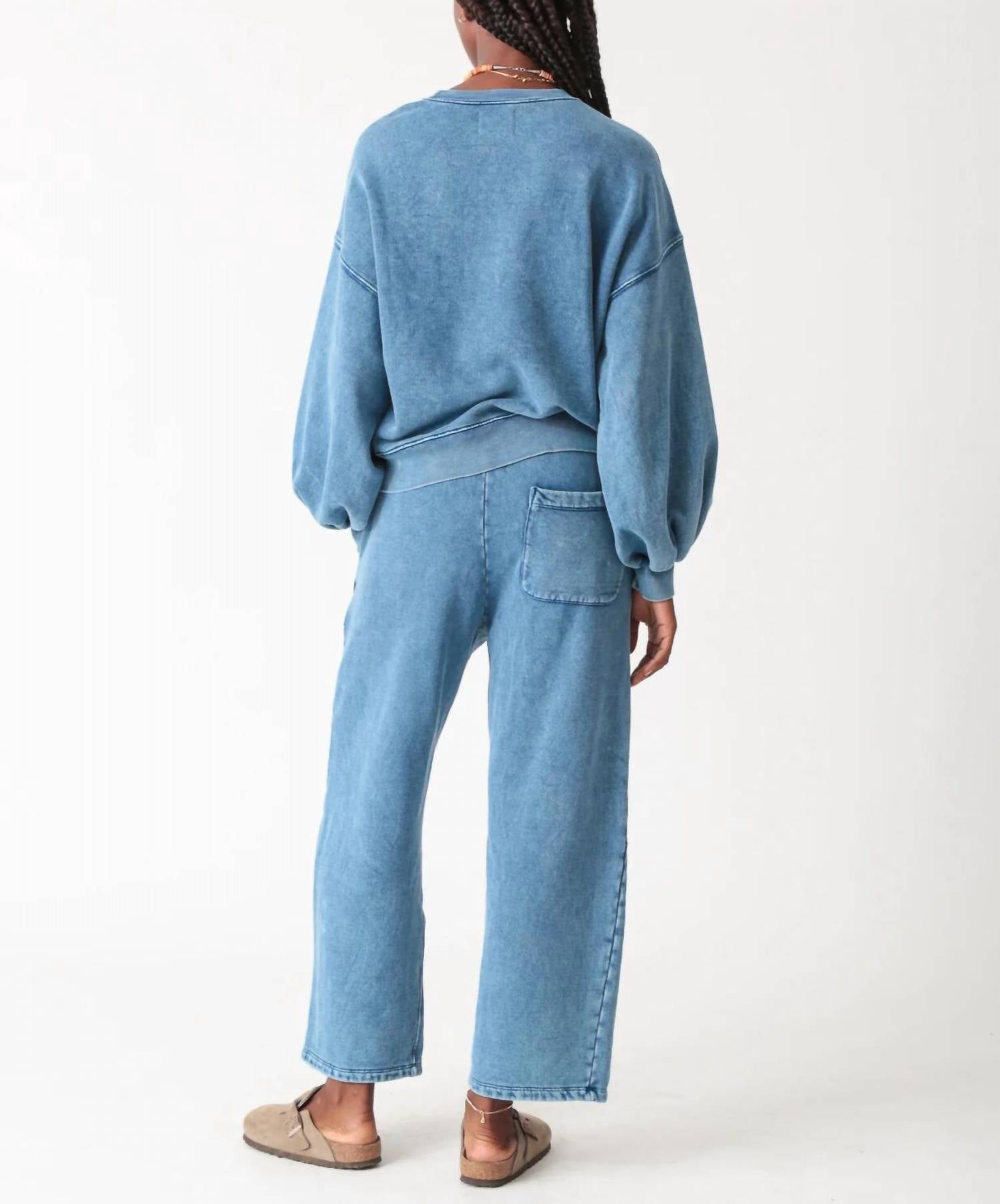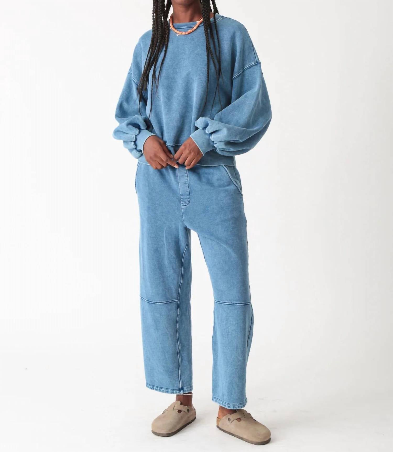 Cooler temps call for layering and we love this adorable sweatshirt for all the obvious reasons. Discover the Balloon Sweatshirt by Electric & Rose, a perfect blend of comfort and style with its long sleeves and drop shoulder design. Crafted from 100% cotton, this chunky fleece crewneck offers a relaxed fit in the vibrant Acid Indigo color. Made in the USA, the pull-on style ensures easy wear and versatility. Care instructions: Machine wash and tumble dry on low. The model stands at 5'9" and wears a size small.