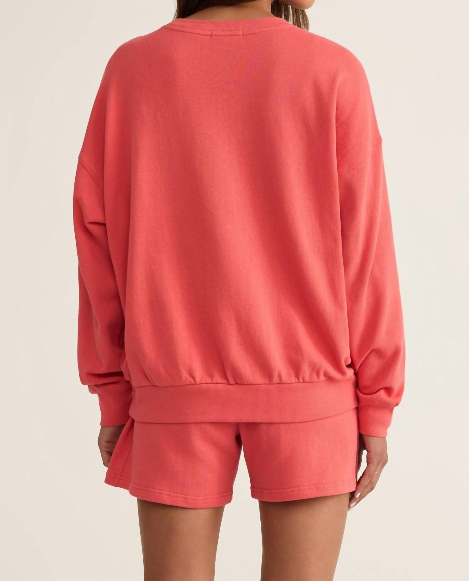 Cooler temps call for layering and we love this adorable sweatshirt for all the obvious reasons. Embrace cozy comfort with the Racquet Club Sweatshirt by Z Supply, finished in an eye-catching persimmon hue and designed for travel. This oversized top features a long sleeve and crew neck, perfect for cool spring days. Crafted from 100% cotton, it offers a midweight, heavy soft wash feel and convenient side zipper closure. Care: Machine wash and line dry.