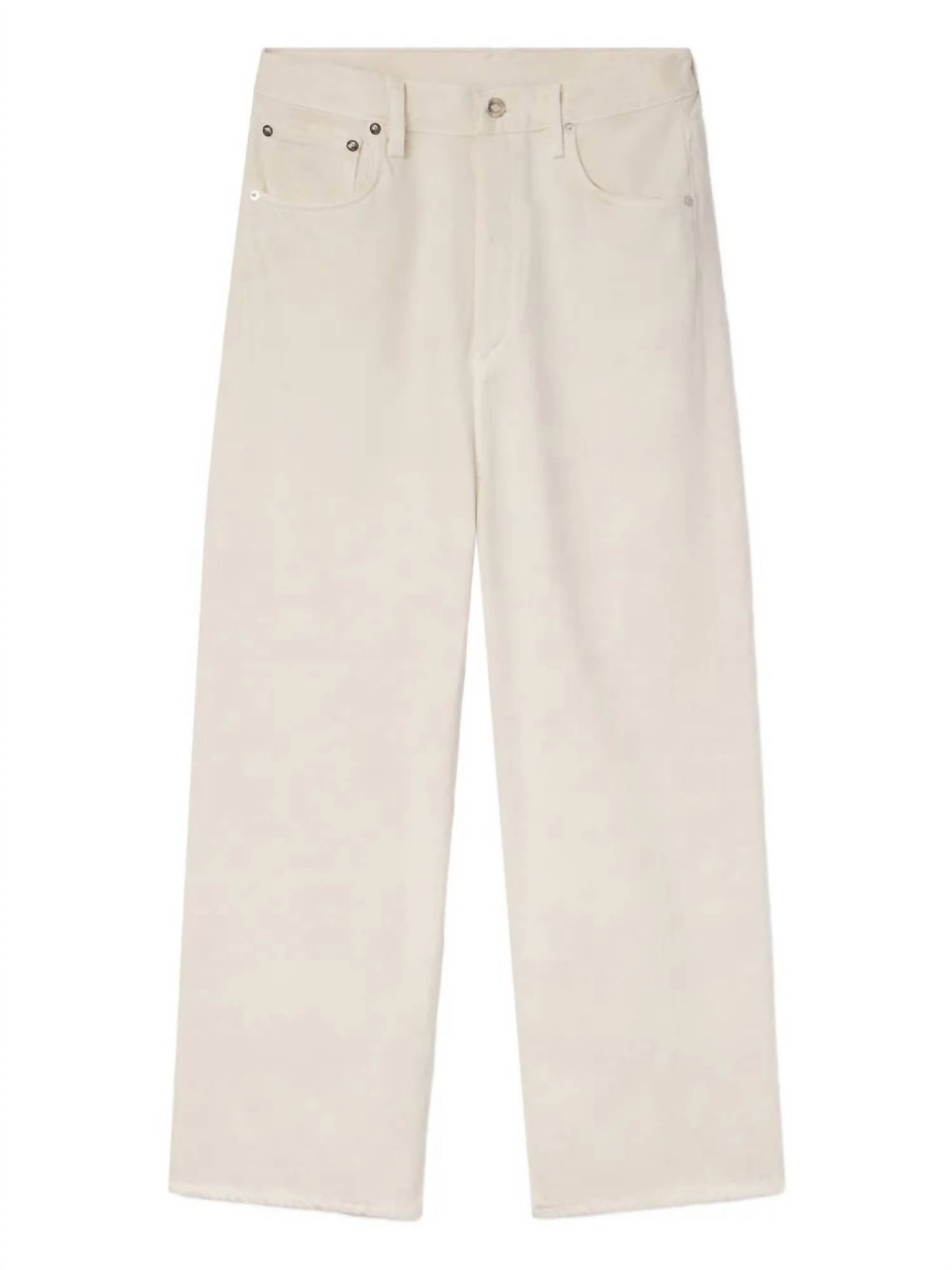 Discover the Ren Wide Leg Jeans by AGOLDE, a chic and elevated addition to your fall wardrobe in a warm Brown Rice hue. These high-rise, wide-leg jeans are made from 100% regenerative cotton, offering a non-stretch, rigid feel that speaks to durability and comfort. With a zipper fly closure, a rise of 12.25 inches, and an inseam of 27.5 inches, they embody a relaxed fit that is both flattering and stylish. Imported with a minimalist design, they are perfect for pairing with a fitted tee or chunky boots, suitable for any dinner party occasion.