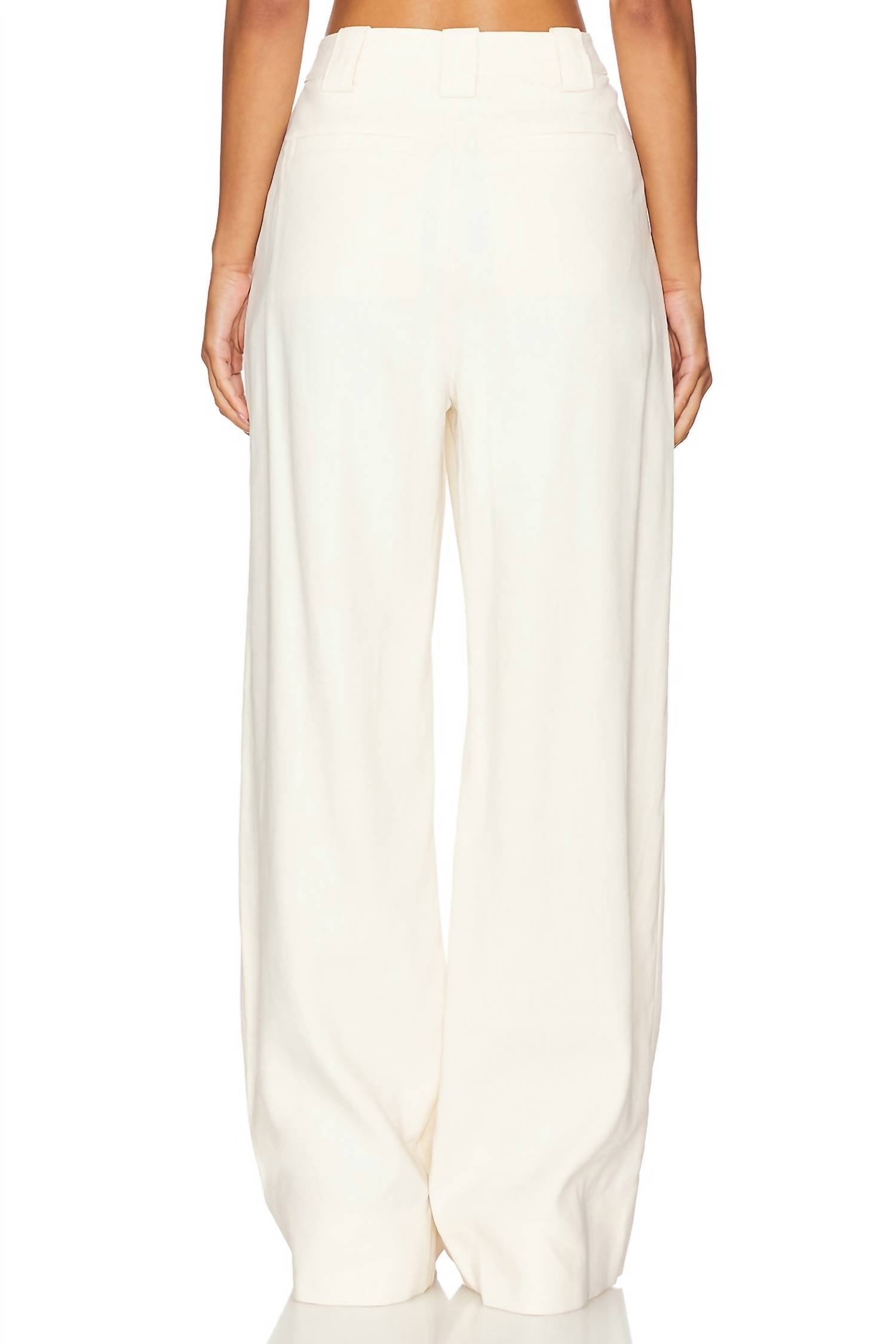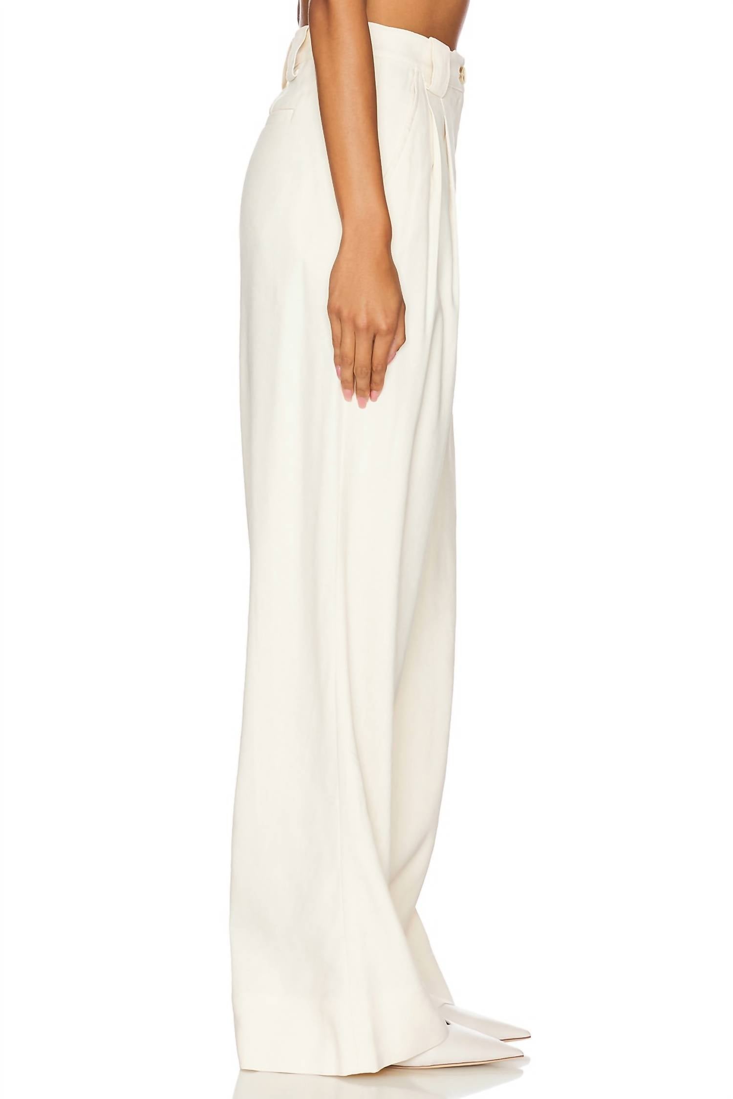 Introducing the Women's Tommy II Soft Suiting Pant by A.L.C., a sophisticated addition to your wardrobe in a subtle buttercream hue. These trousers feature a wide-leg, relaxed fit with a high-rise design, enhancing both comfort and elegance. Crafted from a refined linen blend (52% Linen, 45% Viscose, 3% Elastane) and made in Vietnam, these pants include side slash pockets, back welt pockets, and a secure button closure. For maintenance, these trousers are recommended to be dry cleaned, preserving their luxurious look for spring workwear and engagement occasions. Inseam: 31 inches.
