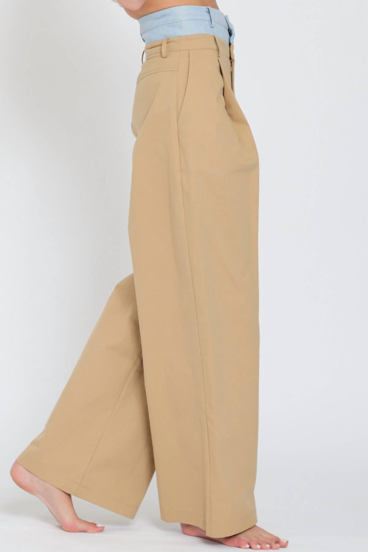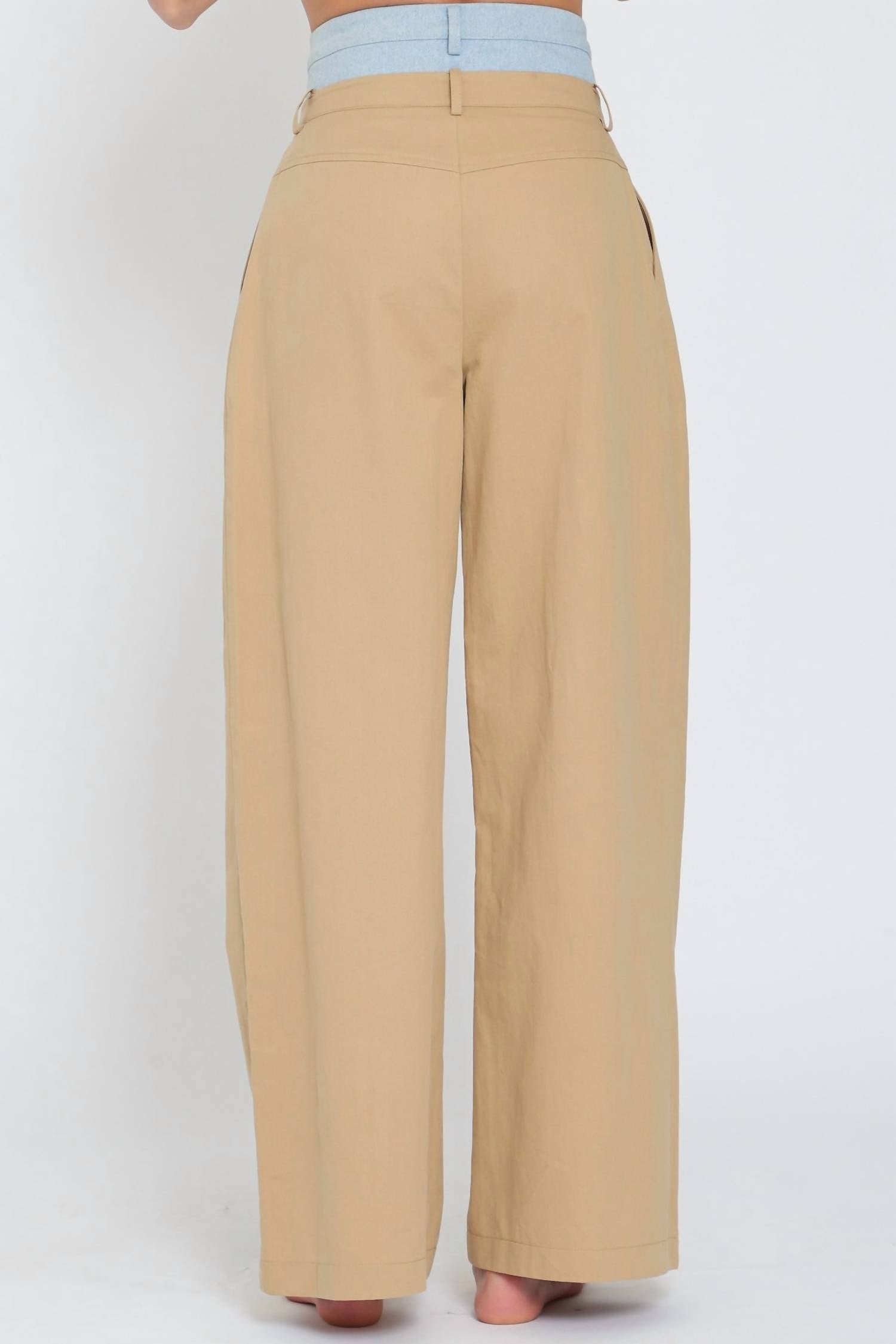 Introducing the Jovie Pants by Aakaa, a chic addition for any wardrobe in a stylish brown solid pattern. These wide-leg pants are crafted with 100% cotton for utmost comfort, featuring a relaxed fit and practical pockets. Made in China, they boast a unique double waistband and zip closure. Care for these trendy pants by hand washing them in cold water.