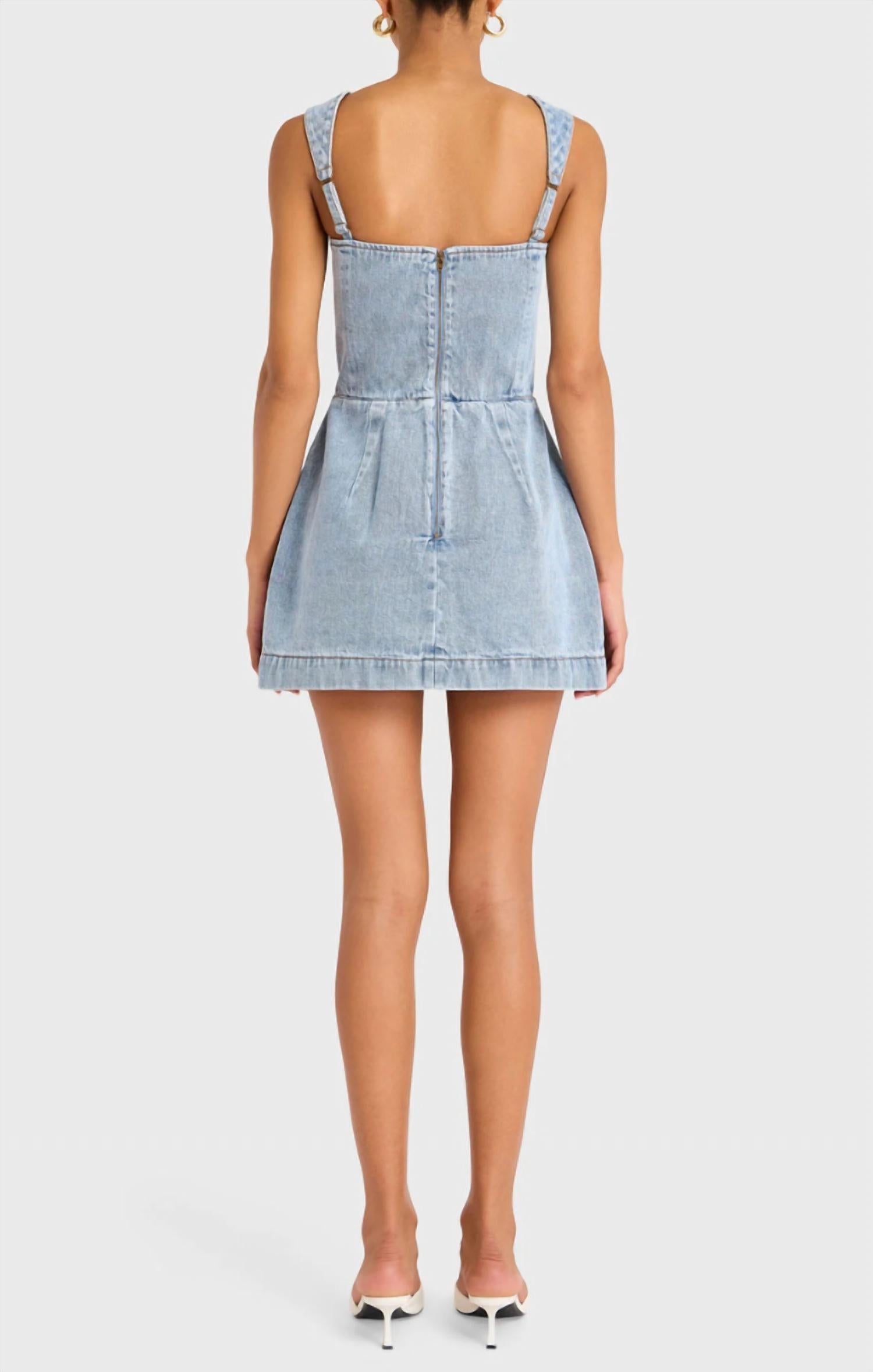Step into style with the Bethany Mini Skort Romper by Amanda Uprichard, perfect for any cocktail party or fashionable event. This trendy piece in a Destiny Wash features adjustable wide straps, a square neck, and elegant bell-shaped skort design. Crafted from 100% Cotton with a 65% Polyester, 35% Cotton lining, it includes faux flap pockets and topstitch detail for added flair. Closure: Invisible zipper at the center back. Care: Machine wash, tumble dry.