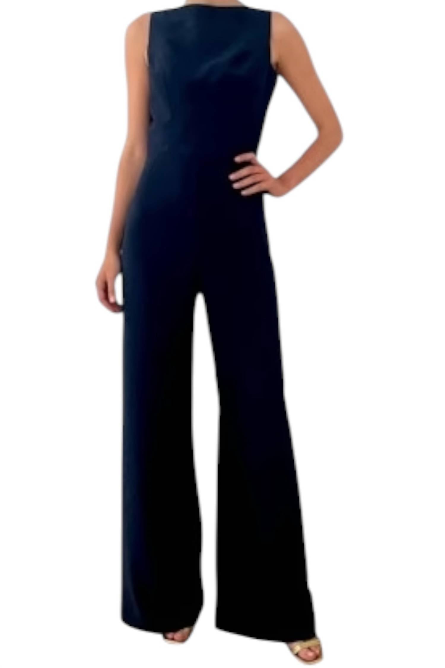 Introducing the Ines Jumpsuit by Amanda Uprichard, a sophisticated piece designed for the modern woman in chic navy blue. This stylish jumpsuit features a relaxed fit and wide-leg style with a subtle striped print, offering a look that's both chic and effortless. Perfect for any occasion, it comes with a zip closure for easy wear. Care: Machine wash.