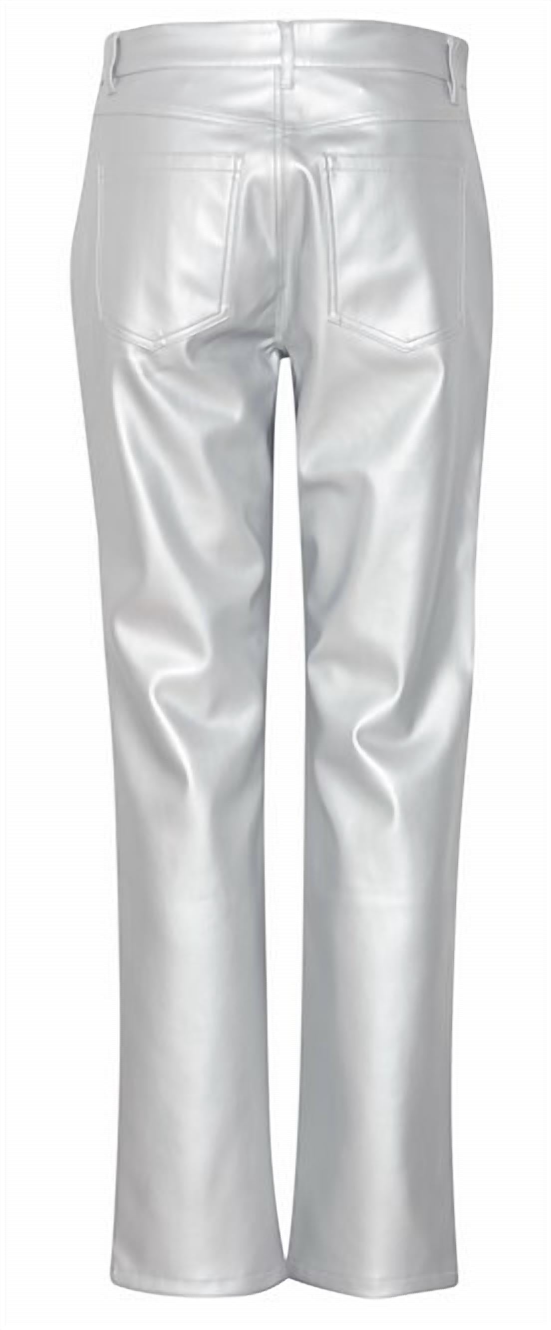 A straightleg pant that workes season after season. Dress these up with your favorite blouse or keep it casual with your go-to tee. Introducing the Deasi Regular Pants by b.young, perfect for any holiday or night out in its sleek silver finish. These high-rise, straight leg pants offer a comfortable fit crafted from 100% polyester faux leather, bringing both style and stretch. They feature a button closure and are made in China. For care, machine wash on a delicate cycle at 30°C, and avoid ironing, bleaching, or using a dryer to keep them in top-notch condition. Model is wearing a size 2, with a noted loose fit that runs true to size.