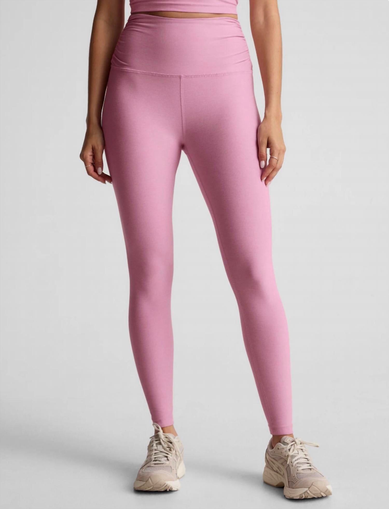 Leggings you can dress up or down for any occasion. 87% polyester, 13% elastane Made in USA Machine wash cold Pull-on styling with elastic waistband Stretch jersey fabric with cinching at waistband sides Logo design in back
