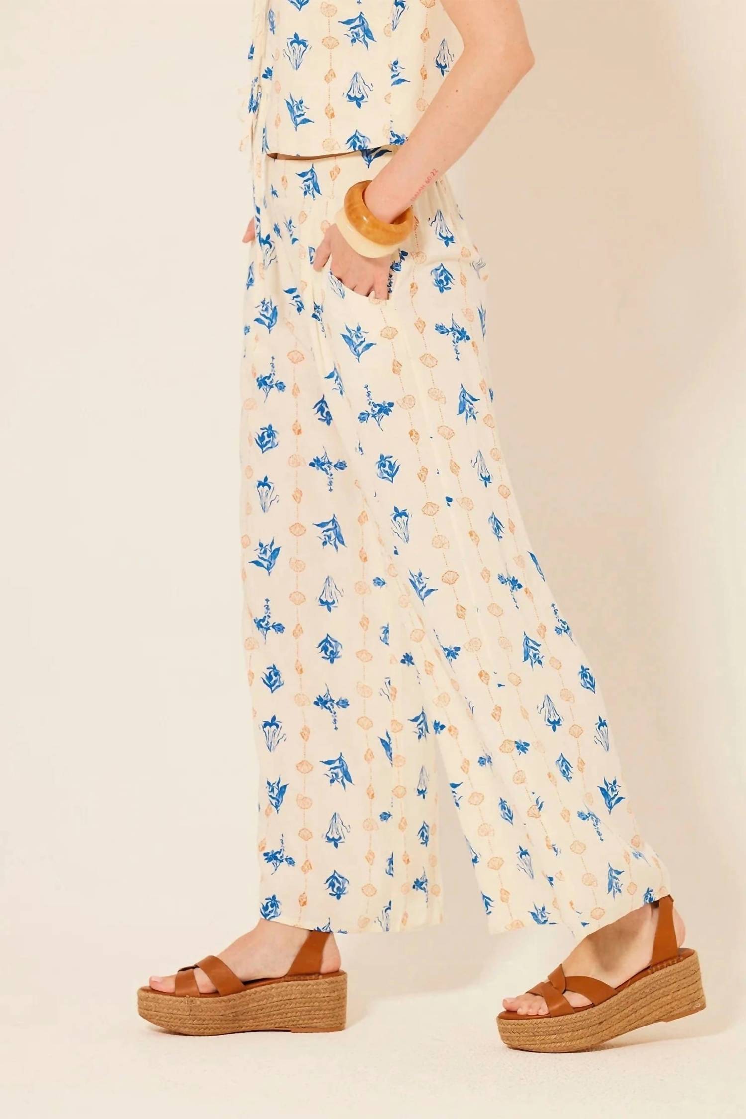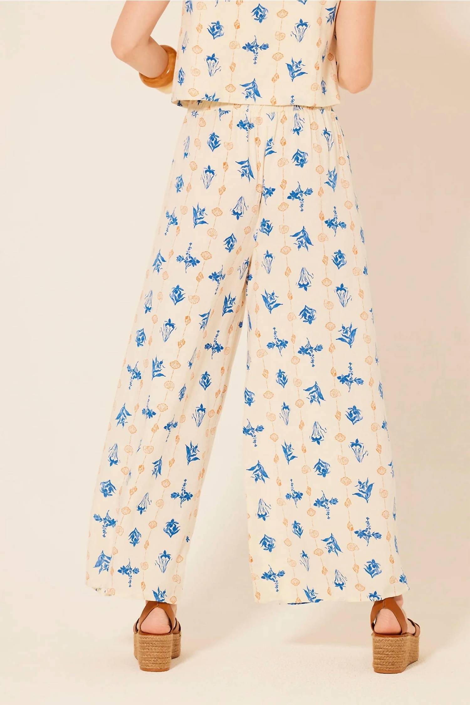 Enhance your wardrobe with the BILA77 Valerie Sea Pant in elegant Gardenia, featuring a high-rise, straight leg silhouette that's perfect for any occasion. Crafted from a blend of 85% Rayon and 14% Linen, this relaxed fit trouser offers both comfort and style with a graphic pattern and practical pockets. Imported with a boho chic vibe ideal for spring vacations, this pant combines functionality and fashion. Care instructions recommend hand washing.