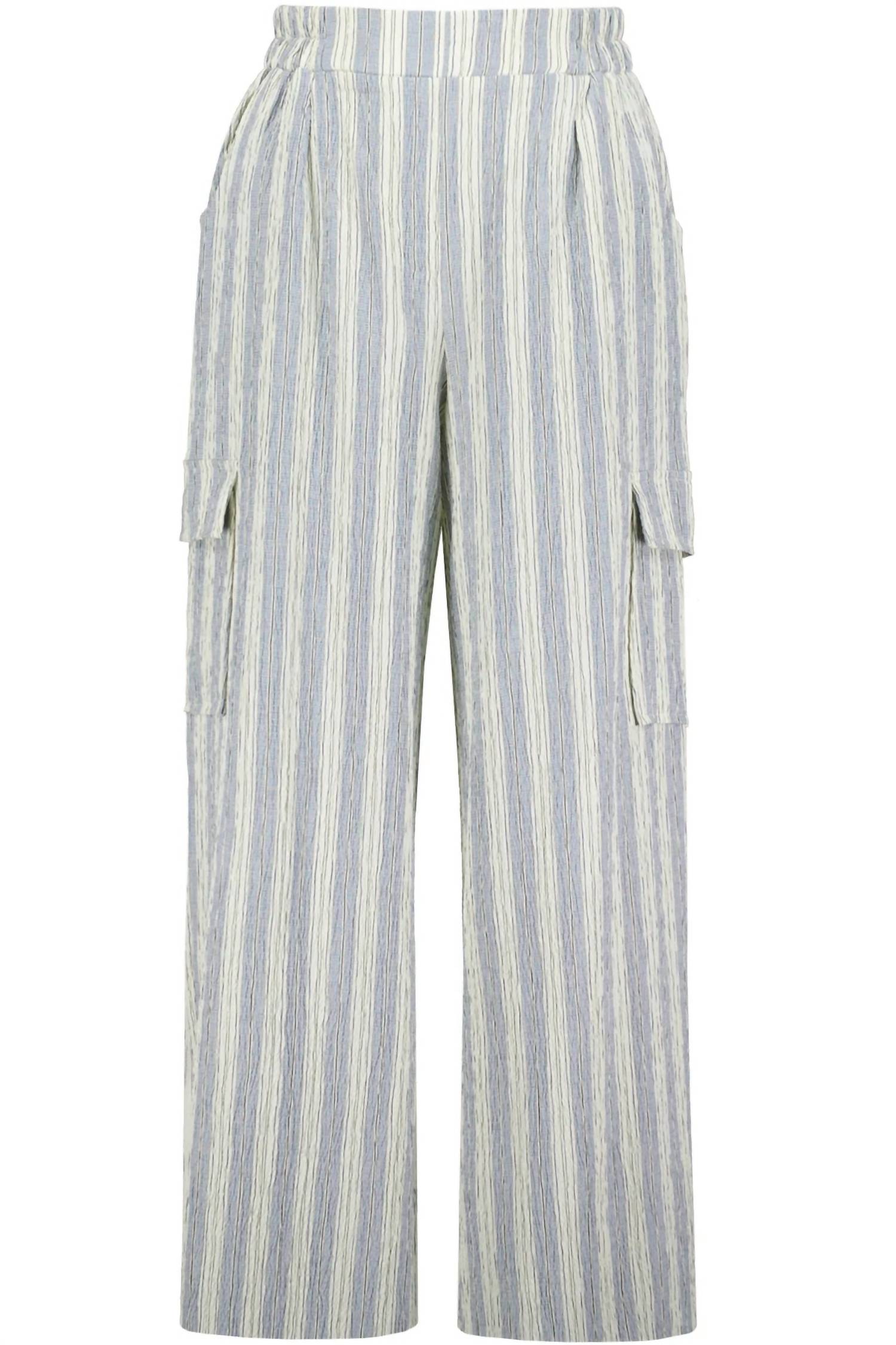 Introducing the Coastal Stripe Cargo Pants by bishop + young, a stylish and comfortable choice for summer. Crafted from 85% Polyester, 13% Rayon, and 2% Spandex, these pants feature a coastal stripe pattern with practical side and cargo pockets. Designed as straight-leg and relaxed fitting, they come with a pull-on closure for ease. Care instructions include hand washing and line drying to maintain the pants' quality, making them a smart addition to any wardrobe.