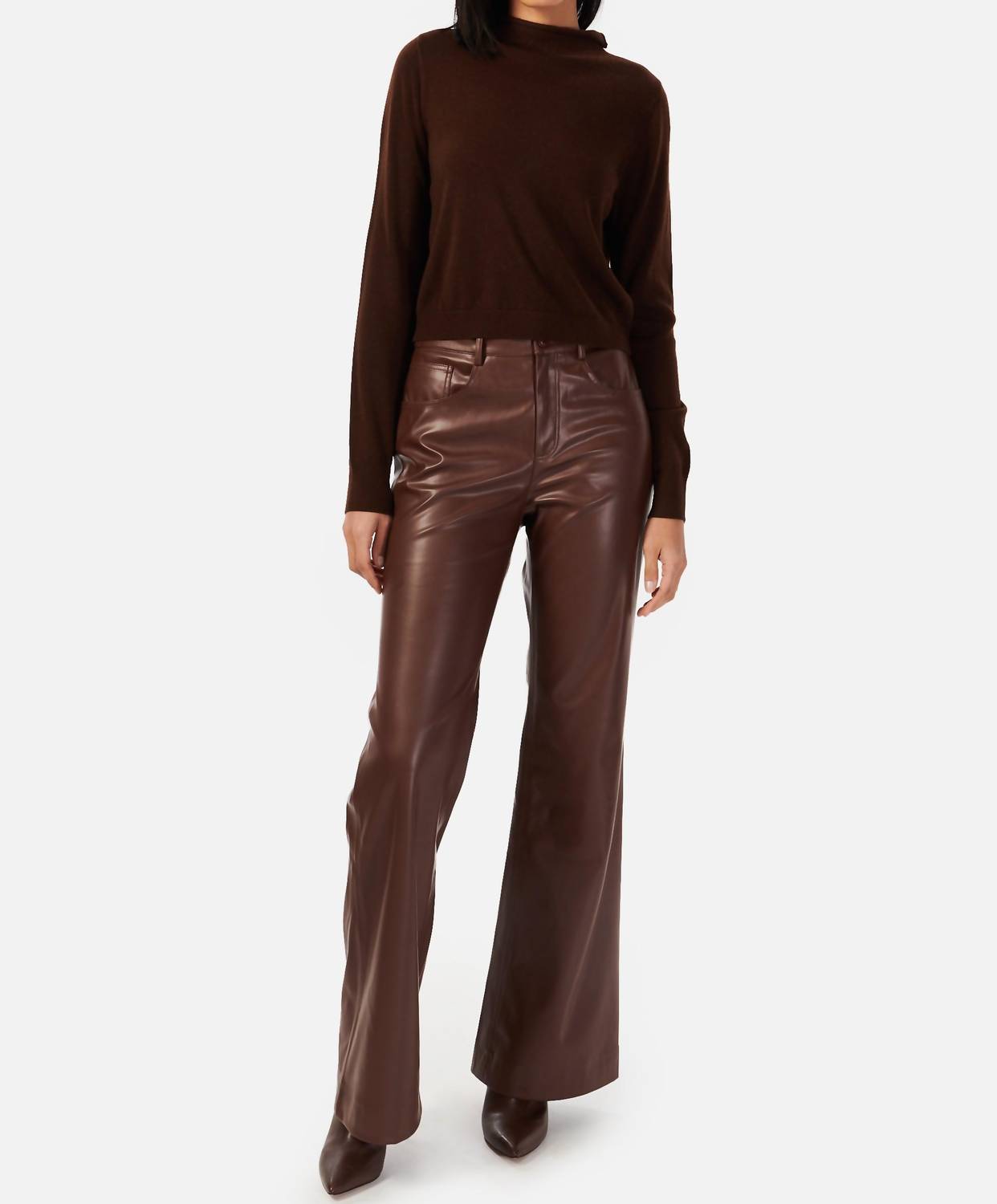 Stay on trend with these stylish boot cut pants that are fit to perfection. The perfect combination of comfort and fashion, you'll be grabbing for these all season long! Elevate your wardrobe with the Zenobia Vegan Leather Pants by Cami NYC, crafted from premium vegan leather for a bold, fashion-forward look. These imported flare leg pants offer an adventurous flair with their striking design, making them perfect for those who love to stand out. Composed of 55% polyurethane and 45% polyester, these pants are true to size and include a convenient pocket feature. Maintain their bold, rich Java hue and impeccable shape with dry clean care.