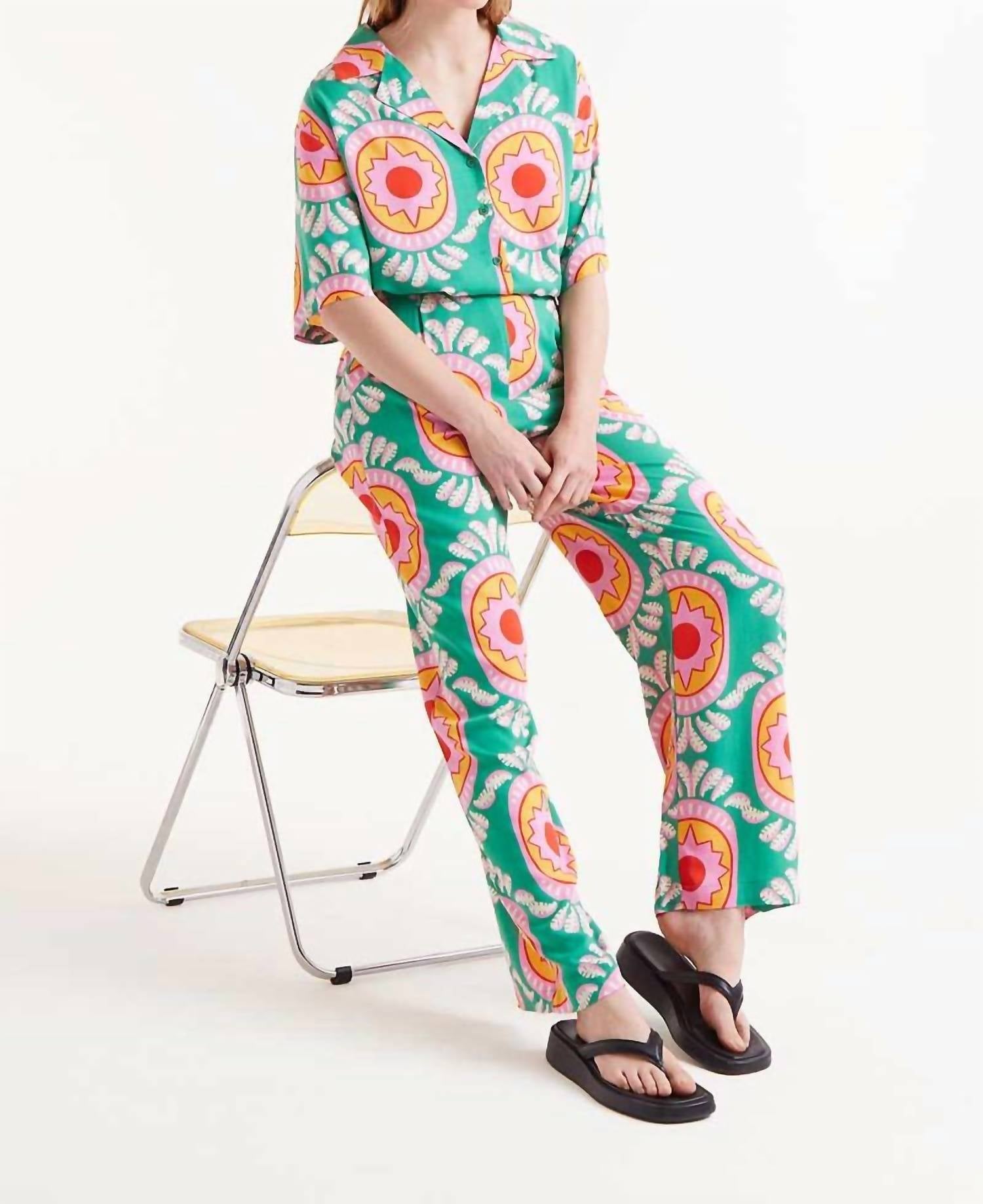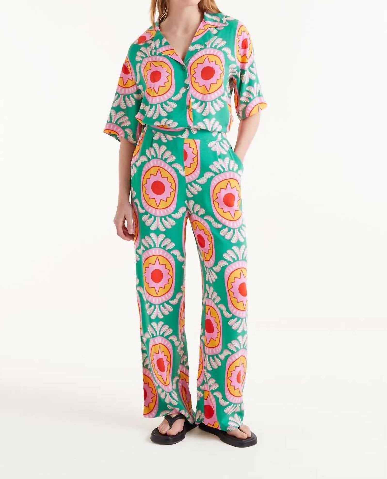 This straightleg pant is both stylish and comfortable. Did we mention the fit is perfection? Embrace vibrant style with the Curitiba Printed Straight Pant by Compania Fantastica, designed in Spain for a relaxed, vacation-ready look. Made from 100% Viscose, these green multi-patterned trousers feature a comfortable elastic waist and straight leg design. With a mid-rise waistband and convenient side pockets, these pants are perfect for making a statement. Care for them easily with machine wash cold and line dry in the shade, avoiding bleach and tumble drying.