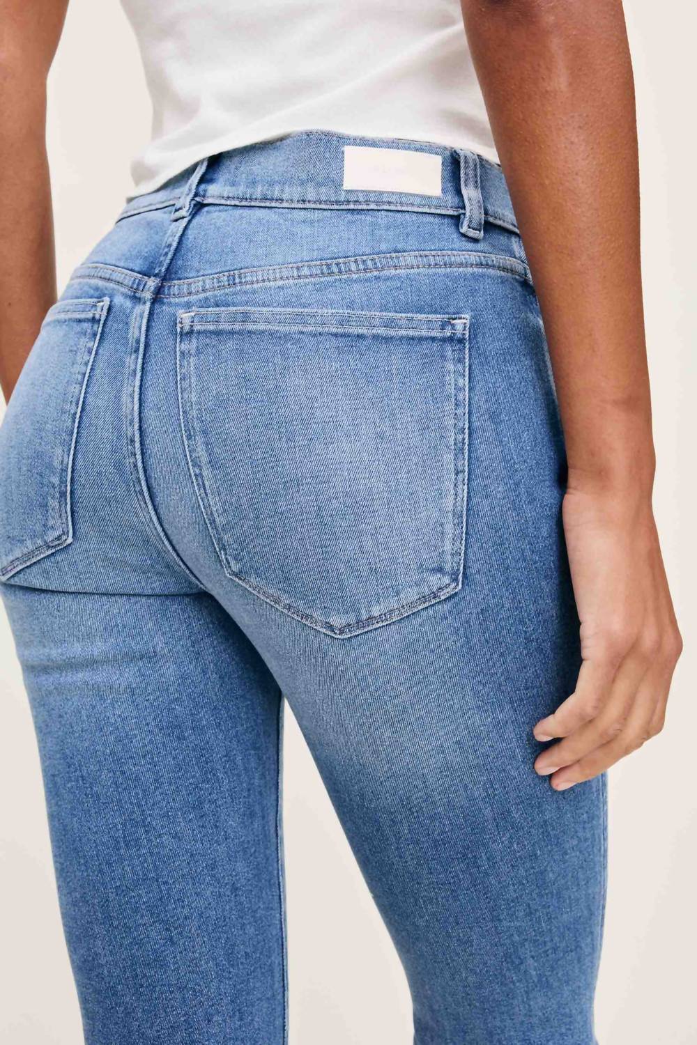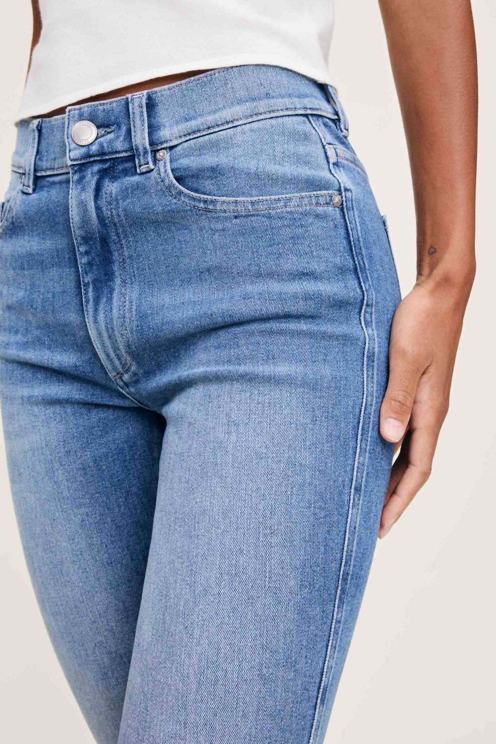 Introducing the Bridget Crop Boot by DL1961 - Women's, a chic addition to your denim collection in the Mansfield wash. These high-rise, bootcut jeans feature a cropped length with a raw hem and are crafted from a soft stretch denim composed of 93% cotton, 6% polyester, and 1% Lycra. They boast a relaxed fit with a rise of 10 inches and an inseam of 27 inches, perfectly accentuated by silver hardware and multi-colored stitching. The button closure ensures a secure fit, while the machine washable fabric with high-retention elastane technology smooths, lifts, and conforms to your body without losing shape.